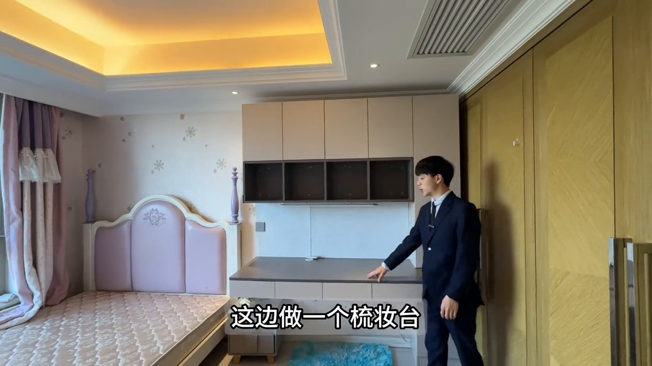四季雅苑153平3房。 有小伙伴留言说想租一套四季雅苑的房子,今天它来了。这是一套153平的三房,现在所在的位置是阳台处,可以看一下小区里面的景观,绿化率非常高,而且小区的环境非常漂亮,还能看见陆家嘴3件套,不知道这样的环境有没有让你心动? 来到房间的内部,它是餐客厅一体,做了一个大的横厅设计,既美观采光而又兼顾到了。这边是一个单独的活动室,做了一个榻榻米的结构。房子是全屋中央空调,带全屋地暖的。厨房的空间非常大,里面的家具都是全屋定制未使用的。这边还有一个冰箱,做的非常的华丽。这边是一个操作阳台,把洗衣机放在外面,水质就不会溅到房间里面来。 餐厅做了一个4人桌,可以添置6人桌,一家人用完餐后来这里看看电视还是非常不错的。 来到第一个卧室,进门左手边做了一排嵌入式衣橱,整个的储物空间还是非常富裕的。这边做一个梳妆台,房间非常精致。这边是一个客卫,一样做了一个浴缸,这你能受得了吗? 来到第二个房间,相对来说比第一个房间就狭小一点,不过空间还是蛮大的,做一个儿童房一样是够用的。 最后一个房间是主卧套房,进门左手边是主卫,双台盆的设计,单独的淋浴室,还带有一个大浴缸,做的非常的精致。房间内部也很漂亮,这里一排黑色定制的柜子,非常的有格调。现在是下午的2点钟,可以看到阳光已经能照进床上了。