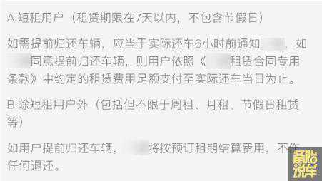 另外就是提前还车,事情提前办完了,不用车子了,剩下的半天我提前还掉,是不是可以把半天的钱退给我呢?