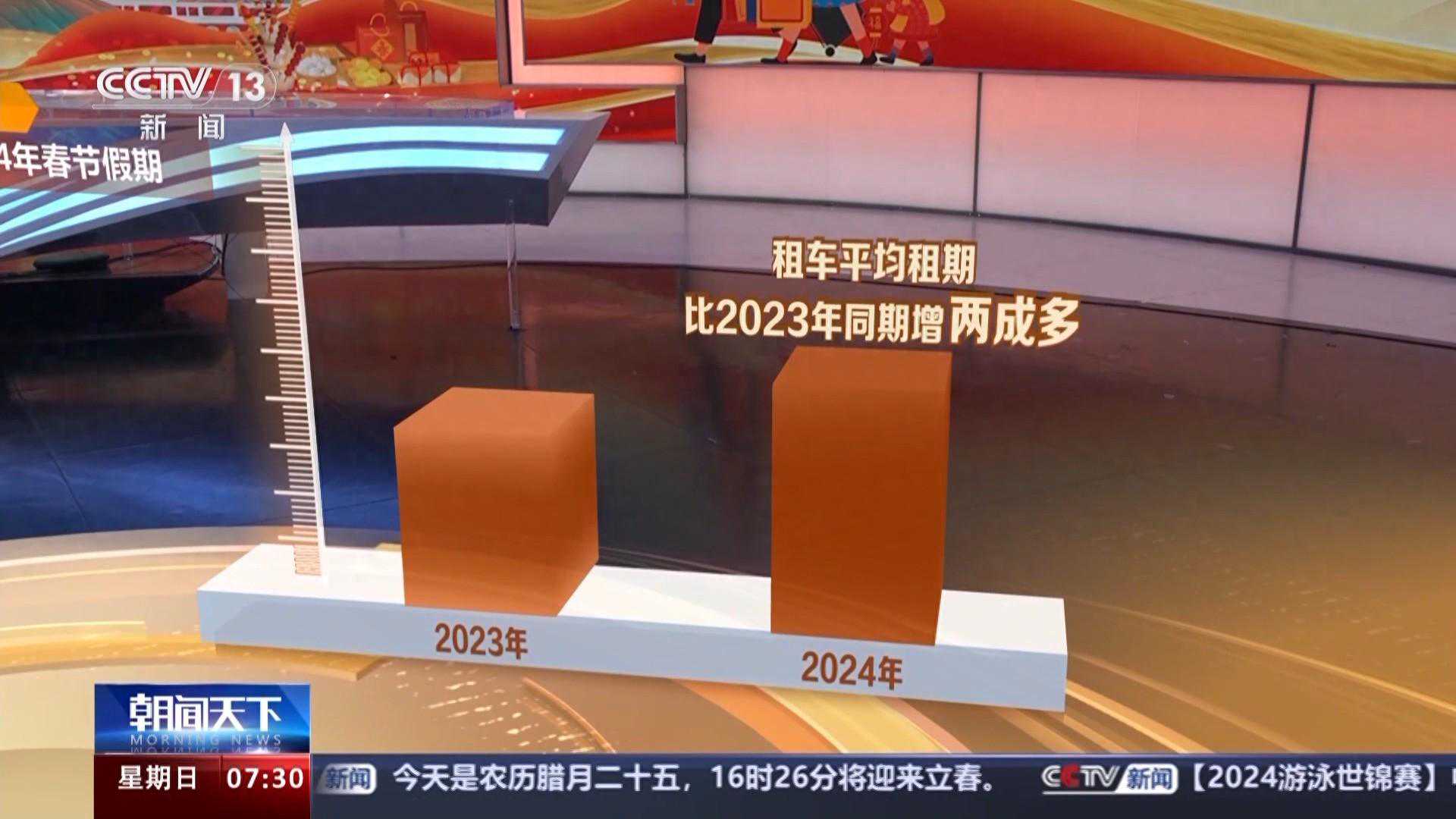 从租车的数据看,今年春节异地用车的订单量是2023年的2.4倍,春节假期跨区域流动的情况远高于去年。