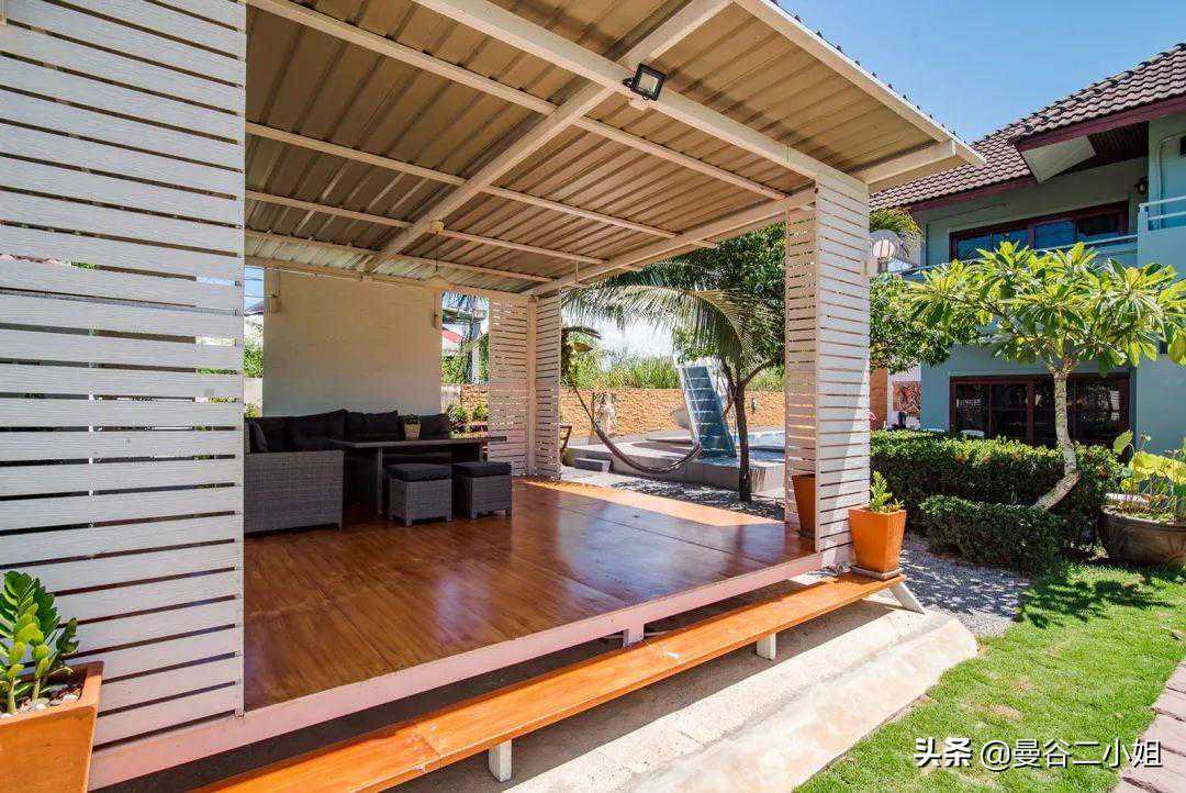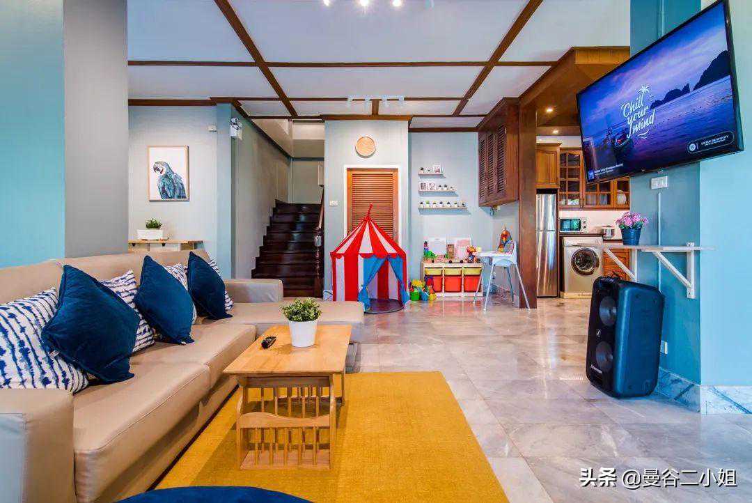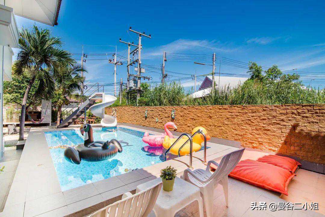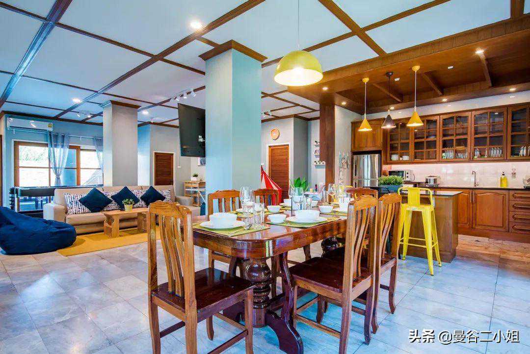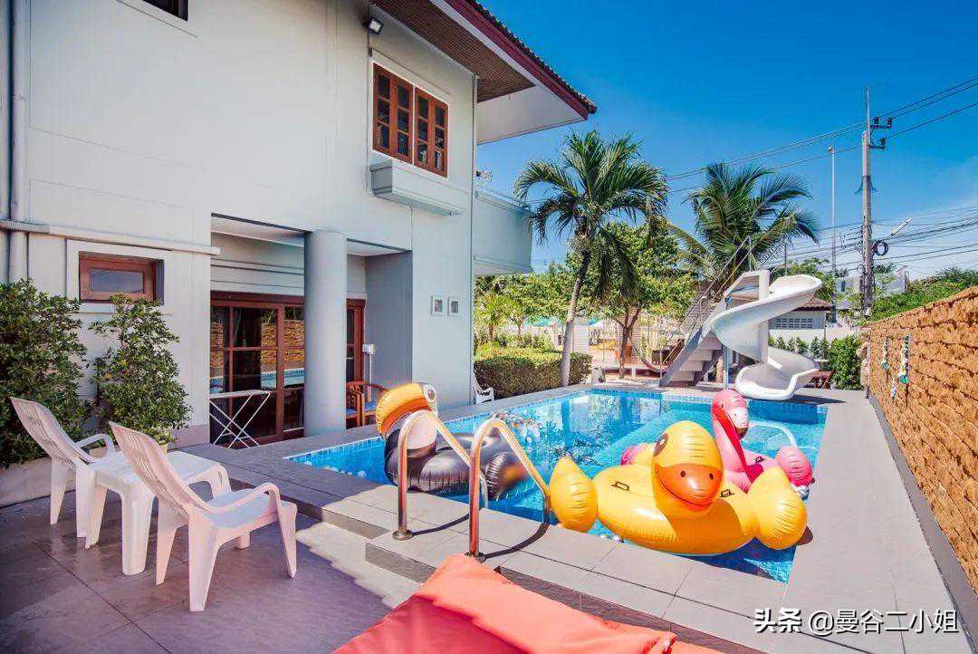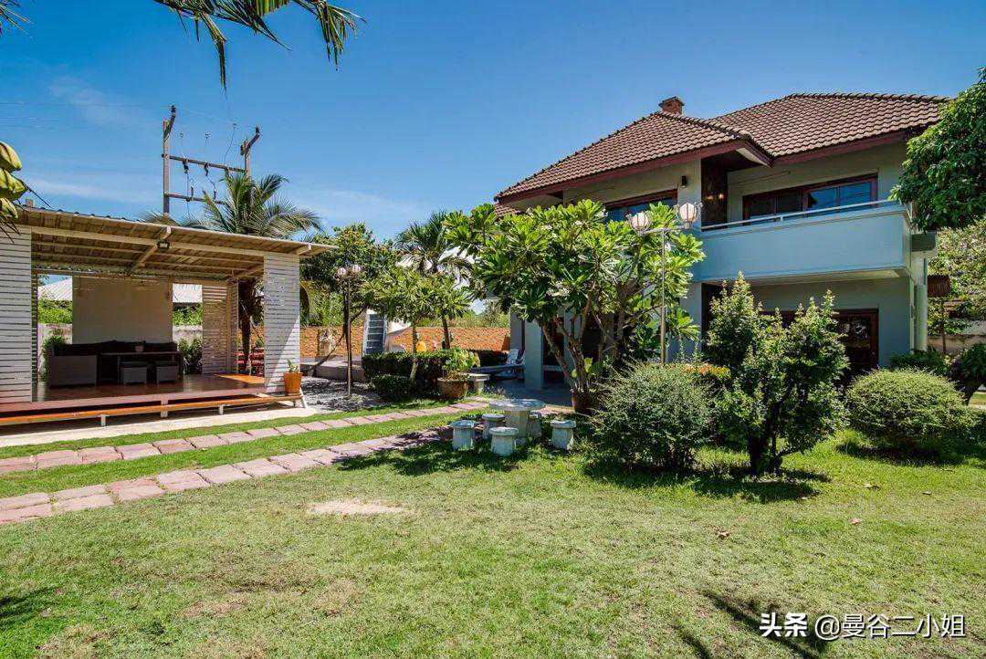 大家好,我是定居曼谷的二小姐。 我们来华欣有段日子了,住的地方也从之前7000泰铢/天的民宿,换成了现在这个价值6000万泰铢的别墅,准备长租几个月。 上次分享的上树摘椰子、做椰子鸡就在这个别墅的院子里。 当时就有朋友问租金多少钱1个月?留个悬念,我放到文末告诉你们,总之白菜价。 先满足你们的好奇心,看看这6000万别墅长啥样吧。 别墅就在海边,妥妥的海滨别墅。外观是挺传统的2层楼泰式风格,很有味道。 院子很大,整个占地面积大概有500多平米。 从远处看起来十分漂亮,煞风景的就是这些泰国特色的电线。这都算好的了,好歹根根分明,还没有绞做一团。 在泰国,电线入地要走很多繁复的流程,另外还要给很多钱,所以干脆自暴自弃就这样了。 你们看曼谷更恼火,过个天桥,团成乱麻的电线就在你脑门顶上10厘米不到,虽然没什么危险吧,但总是让人心惊胆战的。 华欣的光线实在好,都不用后期,原本普普通通的泳池,也被相机拍出了杂志大片的感觉。 这个别墅建成已经有10多年了,房东当年装修的时候花了心思,用的建材都比较好。 所以屋子虽然旧,但维护得很好,没有破破烂烂的地方,也很干净。 屋子里面也布置得很温馨,娱乐设施蛮多。空间开阔明亮,住起来很舒服。 照片里的玩具,房东说都是上一任租客留下的,我们全部消了消毒,孩子们的玩具也有了。 整个一楼没什么分隔,客厅餐厅厨房都在一个空间,所以感觉特别开阔。 我们会长住几个月,直到曼谷疫情好转,就自己搬了许多锅碗瓢盆过来。 每一餐饭食都是自己在家做,保证安全。 这厨房的岛台我超喜欢,做起饭来很顺手。 卧室都在二楼,总共有3个房间,刚好够我们3家人住。布置得都差不多,简单温馨且干净,很舒服。 每个房间都有独立卫生间,很不错。 这栋已经建成有10多20年的别墅,竟然要卖6000万泰铢,折合人民币都要1200万。 我记得之前分享过一个曼谷设计师别墅,那配置可是真正的豪宅,好像也就1200万人民币吧? 我为什么要用“也就”?膨胀了,膨胀了,我又买不起 你华欣一个海滨小镇、泰国农村,凭啥房子这么贵呢? 答案有2个: 1、地段!地段!还是地段!这别墅就在海边,从大门走到下图的沙滩只要1分钟。 2、它整个占地面积有500多㎡吧,房子本身也许不值啥钱,但土地贵啊,还是临海的土地,不得了! 不管大家信不信吧,这老别墅的确要卖1200万人民币,架不住位置好,人土地值钱啊。 去往海边的途中,会穿过这个小小的海滨公园,疫情期间几乎没啥人。 所以公园旁的足球场,被我们“承包”下来,也成了孩子们撒欢的地方。 每天面朝大海,十分治愈,疫情期间的一点点小确信。 每天带娃在海边拾贝壳,挖挖沙子,给小朋友们放放电,回家倒头就睡。 这房子周边还有很多不错的小店,如果不是害怕疫情病毒,真想痛快地逛一逛吃一吃。 最后揭晓房租: 租金35000泰铢/月,折合人民币7000元/月,我们三家人住,平摊下来每家人2350元人民币/月。 就真的很白菜价了是不是! 不过疫情之后,华欣旅游业恢复了,我估计就这个位置,房租不会太便宜,大家到时候再看吧。 预告下期内容,是大家都很好奇的: 外国人如何在泰国买别墅? 我这次买别墅都准备了哪些文件和手续? 在泰国买别墅有什么风险? ·END· 有问题欢迎私信留言告诉我呀 (24小时不定时在线,看到就会回复)