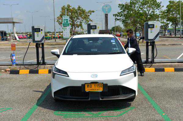 时尚的白色涂装、动感的车身线条、简洁的整车造型,在泰国曼谷素万那普机场,由中国车企生产的电动出租车成为一道靓丽的风景线。素万那普机场是泰国最大、最繁忙的国际机场,年吞吐量超过5000万人次,是不少游客进入泰国的第一站。为了进一步提升游客出行体验,泰国机场公司(AOT)和中国汽车品牌广汽埃安合作,自2024年1月起在素万那普机场引入电动出租车服务,助力打造成绿色出行机场。 ↑3月14日,在泰国曼谷,一名司机驾驶广汽埃安电动出租车。 ↑3月14日,在泰国曼谷素万那普机场一处停车场,司机为一辆广汽埃安电动出租车充电。 ↑3月14日,在泰国曼谷素万那普机场外,一辆广汽埃安电动出租车在路上行驶。 新华社发(拉亨摄)