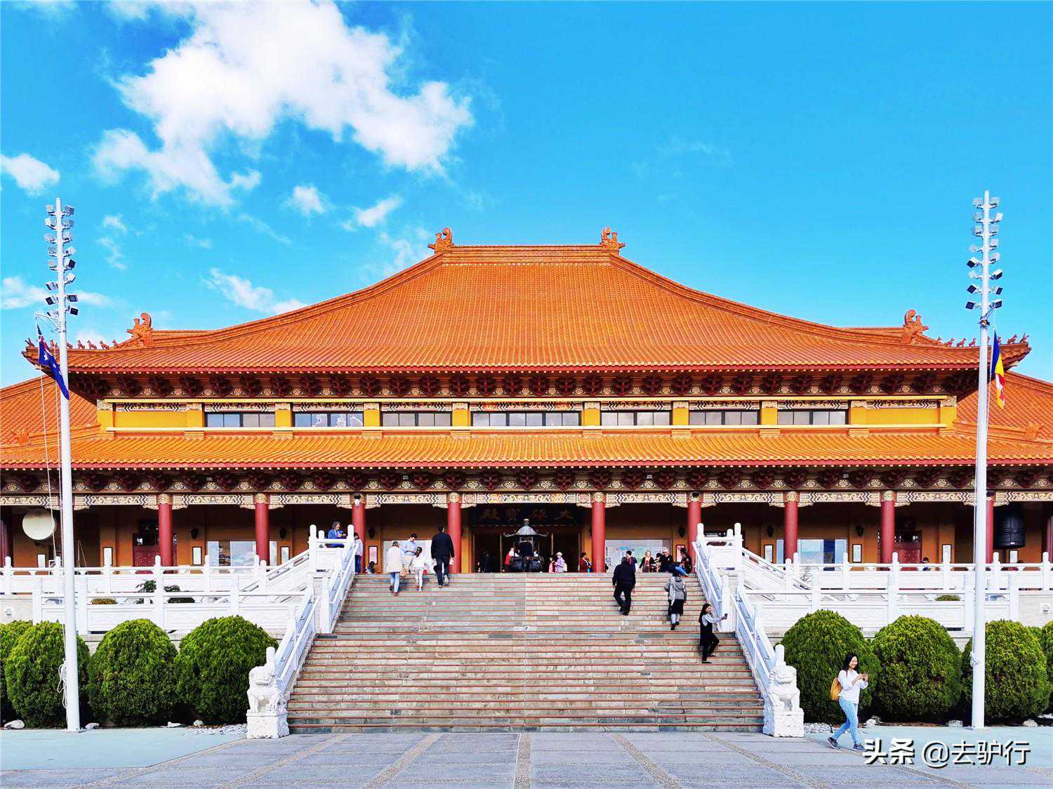 中国佛教文化源远流长享誉世界,但凡有中国人的地方,就有古寺庙宇出现。而这些寺庙不仅是海外华人的精神寄托,也间接地传扬着中国的文化。在澳大利亚悉尼,便有一座名满南半球的寺庙:南天寺。 南天寺是南半球最大的寺庙,坐落于距离悉尼100公里远的卧龙岗上。它的建筑面积近1.1万平方米,与我国最大的寺庙南海禅寺相差近3倍,但在澳洲这样的一个地方批下这么多地,能有如此规模便已实属不易。 南天寺虽为佛门清净之地,但寺庙在保留传统殿堂建筑的基础上,也增加了更多的现代化厅室。比如,国际会议厅和讲堂,同时也增设了中国书法和绘画,以及舞蹈插花等艺术兴趣课程。不仅如此,香客们在参禅悟道绘画舞蹈之余,也可前往素食斋食用素菜,全方位的感受佛教文化。 南天寺虽然位于南半球,具有现代化的建筑特色,却仍然是座地地道道的佛教寺庙。远远看去,代表性的中式砖瓦建筑风格与现代化的水泥玻璃墙体相互融合,兼具传统与现代之美。宽阔的大雄宝殿,庄严肃穆的五方佛,烟火不绝的香炉等等,这些地道的佛教基因无不在说明南天寺的出身。 南天寺由我国著名的佛教大师星云大师集资兴建,为了纪念星云大师,南天寺也在外墙一面宽阔的水泥墙上,雕刻着“创始人星云大师”的中文字样。据悉,澳洲政府在南天寺初期每年收取一澳元的租金,在收取满100澳元之后,又将租金全部捐献给了南天寺,可以说是给足了面子。 南天寺并非星云大师在海外筹集的唯一一个中国寺庙,据悉这位名僧已在海内外筹建了两百多所寺庙。在美国的洛杉矶,同样坐落着一座西半球最大的佛教寺庙——佛光山西来寺。它的蕴意为“佛法西来”,目的是为了促进佛教在西方的进一步发展。 悉尼的卧龙岗南天寺与美国洛杉矶佛光山西来寺一样,都是一座多元化的国际性佛教寺庙,有着更为现代化的一面,更容易被当今的人们所接受。但是也正是因为这样的原因,像南天寺这样的现代化寺庙,它的佛教底蕴虽无法同我国那些著名的千年古刹相提并论,但于佛家而言底蕴并不重要,能够帮助到人,传扬中国佛文化便就达到目的。