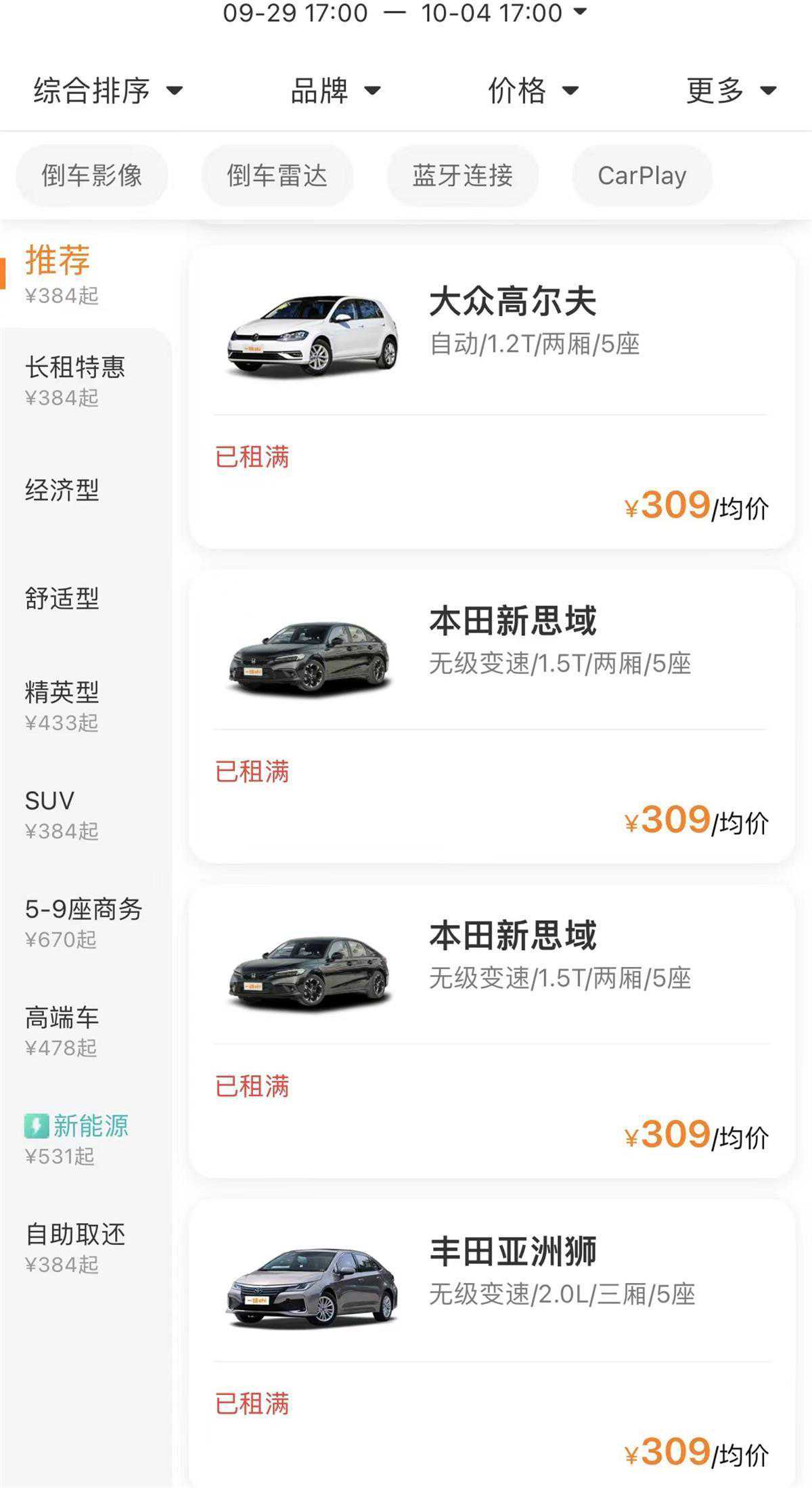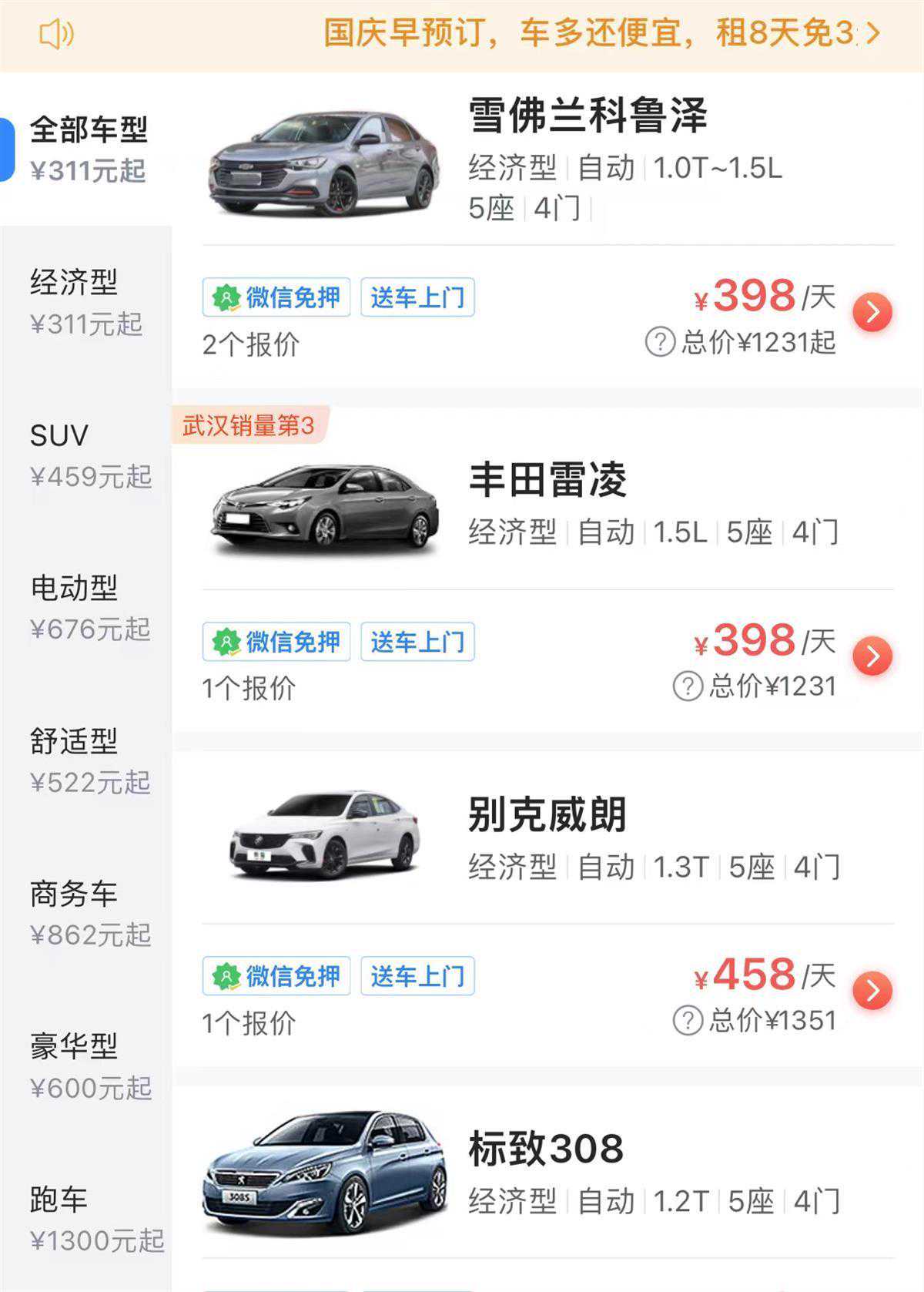 极目新闻记者康旭阳 叠加中秋和国庆“双节”的加长版黄金周,让市民们的出游热情更加高涨,热门旅游城市火车票、高铁票一开售即售罄,机票价格也水涨船高。自由度更高的自驾游,在这个假期再掀热潮。 极目新闻记者在多个租车平台看到,国庆假期期间一些热门的轿车、SUV车型已经租满,单日租金价格较淡季相比上涨了百元左右。新疆、青海、云南等地房车租赁市场也十分火热。 据各大租车平台发布的前瞻数据,今年国庆假期或成为近几年来汽车租赁市场最火热的一年。 租车平台部分车型已约满 在广东虎门工作的小伙孙伟,计划假期在省内江门、顺德等地自驾游,提前订好了酒店和游玩路线后,打开租车平台看到一个个“已租满”的提醒,惊呼:“现在就已经订不到心仪的车了吗?” 国庆假期还没来,但大家的出游热情已经从租车平台暴涨的订单中溢了出来。部分平台和线下租车门店,一些热门5座经济型、舒适型车型已经一订而空。 极目新闻记者打开大方租车平台,定位武汉地区,选择9月30日取车、10月2日还车,可选车型仅剩4款别克7座商务车。而在假期前,该平台上还有经济型、舒适型、新能源、豪华型等众多车型可选。 某平台上众多车型已经租满 同样地,在一嗨租车平台,定位武汉地区,选择9月29日取车、10月4日还车后看到,包括大众宝来、本田凌派、丰田卡罗拉等在内的30多个车型已经租满。“国庆期间租车的游客确实很多,一些热门车型早就被预订空了。”该平台工作人员说,越临近假期,剩余车型可能会越少。 在新疆乌鲁木齐经营旅游租车的石先生介绍,近一个月来,很多游客来咨询适合北疆环线、南疆环线、塔里木环线等自驾线路的车型,乌鲁木齐线下很多车行的国庆订单都快排满了,最受游客欢迎的坦克300已经所剩无几。 各大汽车租赁平台发布的数据显示,今年国庆假期或成为近几年来汽车租赁市场最火热的一年。 哈啰租车9月中旬发布的报告显示,今年国庆,国内自驾租车预订量同比去年增长560%,其中四川、新疆、云南自驾游最为火爆,成都、乌鲁木齐、昆明三个城市租车预订量同比分别增长达6倍、10倍和8倍;携程平台数据显示,近半个月国庆中秋租车预订量环比前半个月增长215%;神州租车双节预订前瞻数据显示,自8月17日开放中秋国庆双节预订以来,租车需求持续高涨,截至目前,预订量同比2022年同期增长超200%,对比2019年同期增幅超30%。 假期部分车型租赁价格翻倍 热门车型供不应求,租车价格也明显上涨。 极目新闻记者打开哈啰租车平台,定位武汉,选择9月22日取车、9月24日还车看到,不少车型日租价格不到100元,有车型日租价格低至40元一天,以大众迈腾为例,该时间段单日租车费为129元。而同样的车型、同样的取车地点,选择9月29日取车、10月1日还车,单日租车费涨至522元,该时间段平台最便宜的车型日租金为311元。 国庆期间租车价格上涨 携程租车、一嗨租车、神州租车等平台,在国庆假期期间各车型的租车价格,较平日相比也同样出现上涨的情况。记者咨询多个租车平台客服了解到,租赁费会根据市场需求随时调整,国庆假期租车市场比较火爆,价格较淡季相比自然也会有所上涨。 “我们一家4口,两个大人带小孩,准备在江浙地区自驾游5天,租了一辆大众宝来,车辆租赁费和门店服务费近1600元,还有300多元的基本保障服务费、车辆整备费,再加上预计1000元的油费,租车总成本大概在3000元。”南京市民龚先生说,从费用来说,和坐高铁、地铁、打车相比差不了太多,从灵活和自由程度上来说,还是租车更方便,“况且国庆长假高速还对小型客车免费呢!” 北京的王女士则选择租房车游新疆。“我们计划先坐飞机到达乌鲁木齐,然后和朋友拼房车,从乌鲁木齐到喀纳斯、伊宁市、独库公路,再回乌鲁木齐。”王女士说,6个人租5天房车总费用万元出头,加上油费平均每人2000元左右,还解决了住宿问题,“不仅更自由,也挺划算。” 极目新闻记者在社交平台上看到,不少80后、90后网友晒出了国庆假期房车出游攻略。据房车租赁平台数据,国庆假期,新疆、青海、甘肃、四川、云南是房车自驾游热门地区。 建议游客选择正规平台租车 “今年十一黄金周,高铁一票难求,机票紧俏且价格较高,再加上自由行成为当前旅游的热门方式。租车自驾游方便快捷、自由度高,从经济成本的角度考虑,全家自驾游也可以降低人均成本。”在业内人士苑承建看来,国内租车市场越来越成熟,取车还车甚至是异地还车都很方便,租车成本和服务也越来越透明,这些都增加了租车出行的需求。 不过,游客们在租车时也要多方对比、多留个心眼。 苑承建建议,游客租车时优先选择信誉度高、口碑好的租车平台和公司,仔细阅读租车合同,特别是关于费用、保险、违约等方面的条款,确保自己的权益不受侵害;取车时注意仔细检查并用手机记录车辆的外观、内部设施和车况,查看车辆保险和行驶证,尽量避免使用有未处理违章的车辆。如果遇到问题,及时与租车平台进行沟通和协商,保护自己的权益。 极目新闻记者注意到,各大平台租车费用除了租赁费外,还包含一笔投保三者险和交强险的基础服务费,那么平台推荐的其他租车保障是否还需要额外再购买? 平台推荐的额外保障 “是否需要购买额外的保险,需要根据个人驾驶经验、习惯以及目的地状况来综合确定,并非必须要买。”