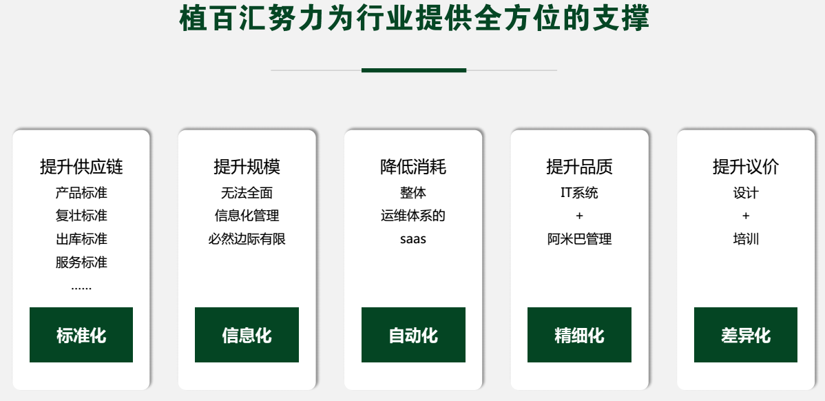 9月8日上周六,“植百汇2018年秋季咨询会”在风景隽秀的苏州展开。植百汇南京总公司、苏州分公司、上海分公司主要负责人悉数到场。咨询会有序进行,同行们都对今后的植百汇发展抱以很高的期望。 要点1:绿植平台未来发展及其方向 植百汇创始人兼CEO范诚指出现在绿植行业以中小企业为主,且局面散乱;绿植租摆行业规模约300亿元,而现实年租金收入1000万以上企业全国仅为30多家。 纵观绿植行业特点,总结为以下五点: 1、行业门槛低、无核心竞争力 2、行业不透明,相关标准缺失 3、营销手段同质化、单一化 4、养护管理不稳定、客户速率高 5、管理难度大,投入产出不成正比 而植百汇的出现,会为行业带来新的变革。 最后,范诚先生提出植百汇的持续发展目标: 1、帮助大家建立分销系统 2、帮助大家拓展中小型客户和家庭客户 3、帮助大家提高设计和获客能力进行差异化竞争 4、帮助完成相关行业培训 要点2:植百汇平台定位 植百汇上海分公司负责人张其武指出,植物管家作为植百汇的网络平台是一站式服务,租摆公司仅需承担企业客户拓展和客户维系,其他流程都由植物管家管理。 平台八大特点,即实际又全面: 1、专享IPAD\手机端APP店铺 2、移动办公管理 3、可视化服务标准 4、专业培训 5、科学化新物流 6、全年科学派单 7、产品多样性 8、金牌服务保障 要点3:植物微管家APP上线 9月6日,植物微管家IOS和Android版本同步上线。植百汇苏州分公司负责人杜鹏展示了植物微管家APP的操作方法,APP界面干净不做作,操作便捷易上手,不仅可以买植物,租植物,还可以管理植物。 APP在应用商城里搜索“植物微管家”即可下载安装。 本次秋季咨询会,植百汇全面剖析绿植租摆的行业现状,提出合理性的变革思路,并已付诸行动。这是个互联网+的时代,植百汇的线上管理经营配合线下的实际操作养护是符合科学发展的,未来的路很长,期待植百汇率领租摆行业迎来新的绿色变革。