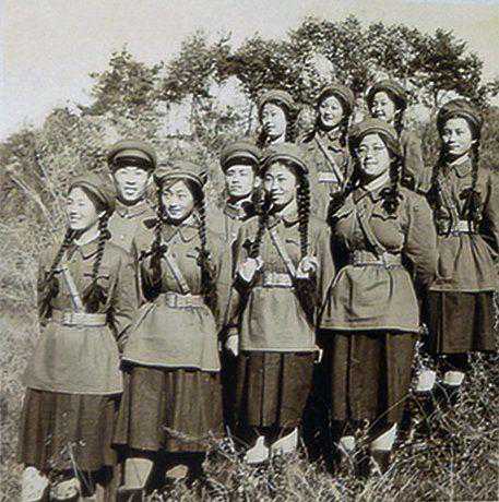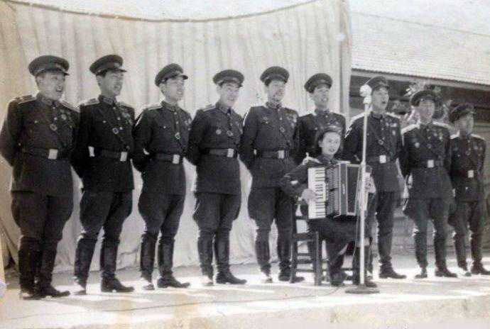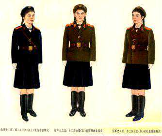 文工团演出服,也称文工团礼服,是军队专业文艺团体演出时穿着的制式服装,属于军礼服的一种。前些天,我们分别介绍了我军礼服、仪仗队礼宾服的发展沿革,引起很多读者兴趣。下面再介绍一下我军文工团演出服的今昔。 战争时期我军宣传队、文工团 和战士穿的一样 红军初创时期,已经建立了专门的文艺演出组织,一般叫宣传队。以后,一些宣传队改称剧社,如战士剧社、战斗剧社、抗敌剧社、战地服务团等。解放战争时,一些宣传队、剧社改称文工团。新中国成立前夕,各大军区(野战军)、军政大学、兵团、军等相继组建文工团。战争时期,我军的宣传队对于战场鼓动起了重要作用。 红军宣传队队员。 由于受战争环境和经济条件的限制,宣传队没有专门的制式演出服,宣传队员和战士穿的一样,演出时穿的军服和普通军服样式、布料完全一样,顶多是新一些、干净一些。那时侯别说宣传队员服装和战士一样,其他待遇甚至还不如前方普通战士,如吃粮一天要少几两,发鞋每年还少两双。可是也没有谁不服气,战争时期嘛,“一切为了前线”“一切为了胜利”。那时宣传队员除了宣传鼓动工作,有时还参加战场救护,甚至直接参加战斗。 1941年晋察冀军区抗敌剧社小演员合影。 新中国成立前夕,第三野战军文工团女兵。 新中国成立初期 有了专门的演出服 新中国成立后,各方面条件好了,人民解放军进入正规化建设时期。1950年,全军装备50式军服。50式军服一开始并没有专门的文工团演出服,文工团员服装与普通战士一样:夏季均戴大檐帽;男文工团员夏服上衣为套头式,紧袖口;女文工团员夏服为连衣裙,冬服为列宁服。佩戴三军金属帽徽和“中国人民解放军”布质胸章。1951年后,女文工团员改戴无檐帽,但也有戴解放帽的。 中国人民志愿军文艺工作者在前沿坑道慰问战士。 1953年专门给文工团员设计了制式服装。男团员戴大檐帽,女团员戴无檐帽;上衣都是苏式套头衫,三粒铜扣,两个上挖袋,扎武装带;男团员穿马裤,女团员穿蓝色裙子,均穿长统靴;衣料是呢子,还配有呢子大衣。在当时来说,这套行头已经是相当“奢华”了。 1953年刚换上正规演出服的中国人民志愿军某军文工团员,此时还没有任何识别标志。 1954年解放军歌舞团出访东欧的照片。 解放军歌舞团女合唱队员 威武、神气的55式文工团礼服 1955年,为配合实行军衔制,全军换装新式军衔服装——55式军服。这套军服突破了我军单一制式军服的历史,第一次设置了礼服和常服两大类军服。三军文工团员也配发礼服,样式、颜色与军乐团、体工队礼服相同。此后,我军文工团演出服与军乐团演出服款式基本一样。 陆、海、空军文工团男团员: 大檐帽,颜色按军种区分:陆军帽顶、帽墙均为棕绿色,帽瓦上边有正红色牙钱,下边有本色牙线;海军帽顶夏季为白色冬季为藏青色,帽墙藏青色,外围黑色纱带,帽瓦上、下边缘有白色牙线;空军帽顶、帽墙均为棕绿色,帽瓦上边有天蓝色牙线,下边有本色牙线。均有黑色帽带,金黄色帽扣,黑色帽檐。 上衣为小翻领,单排五粒古铜色纽扣,四个暗袋有袋盖,下衣为散腿裤。颜色按军种区分:陆军上、下衣均为棕绿色;海军夏季上衣白色,下衣藏青色,冬季上、下衣均为藏青色;空军上衣棕绿色,下衣藏蓝色。 1956年总政歌舞团男声小合唱。 陆、海、空军文工团女团员: 无檐软帽,颜色按军种区分:陆军棕绿色,帽瓦上边有正红色牙线;海军藏青色,帽瓦上边有白色牙线;空草棕绿色,帽瓦上边有天蓝色牙线。 上衣为小脖头,翻领,单排三粒古铜色纽扣,左、右平口暗袋有袋盖;白衬衣,扎领结;下衣为裙子。颜色按军种区分:陆军上衣棕绿色,下衣藏蓝色;海军夏季上衣白色,下衣藏青色,冬季上、下衣均为藏青色;空军上衣棕绿色,下衣藏青色。领结颜色:陆、空军棕色,海军藏青色。 男女文工团员均佩戴55式帽徽、肩章、领章,扎武装带。“远看将校服,近看大茶壶”。说的是当时文工团穿的毛料服远看和将校官常服差不多,文工团员们的肩章上没有军衔标志,只有一个古笙的标志,有人就戏称古笙是大茶壶。1955年文工团员佩戴文工团肩章和军兵种领章,1958年又设计了新的文工团领章,将文工团的古笙符号移到领章上。 55式陆军军乐团、文工团、体工队肩章。 58式军乐团、体工队、文工团领章。 朱德元帅与文工团员交谈。 上世纪50年代参加欢迎活动的西藏军区女文工团员。 戴红领章的文工团演出服 1965年6月1日我军取消了军衔制,为节省开支和体现官兵一致,同时取消了礼服等毛料军服。除海勤干部、战士仍发呢服外,全军干部、战士军服用料一致,均为棉布。文工团员的着装和全军官兵一致,戴解放帽,佩戴全红帽徽、领章。 上世纪70年代初昆明军区政治部宣传队女队员。 到了上世纪70年代初期,由于执行特殊任务的需要,我军部分人员开始装备毛料军服,最早先从三军仪仗队开始。1972年2月为迎接美国总统尼克松访华,周总理指示专门为仪仗队定做了毛料服。这年4月,中央军委批准驻外武官配发毛料军服:夏服为凡尔丁;冬服武官为华达呢,译员为毛哔矶。 此后不久,我军军乐团、专业宣传队开始配发毛料服装。所谓专业宣传队,就是有正式编制的原文工团。按规定,大军区以上单位及海军舰队、军区空军才有专业文工团。 1973年铁道兵政治部宣传队演出。 1973年海军政治部宣传队演出。 1974年8月16