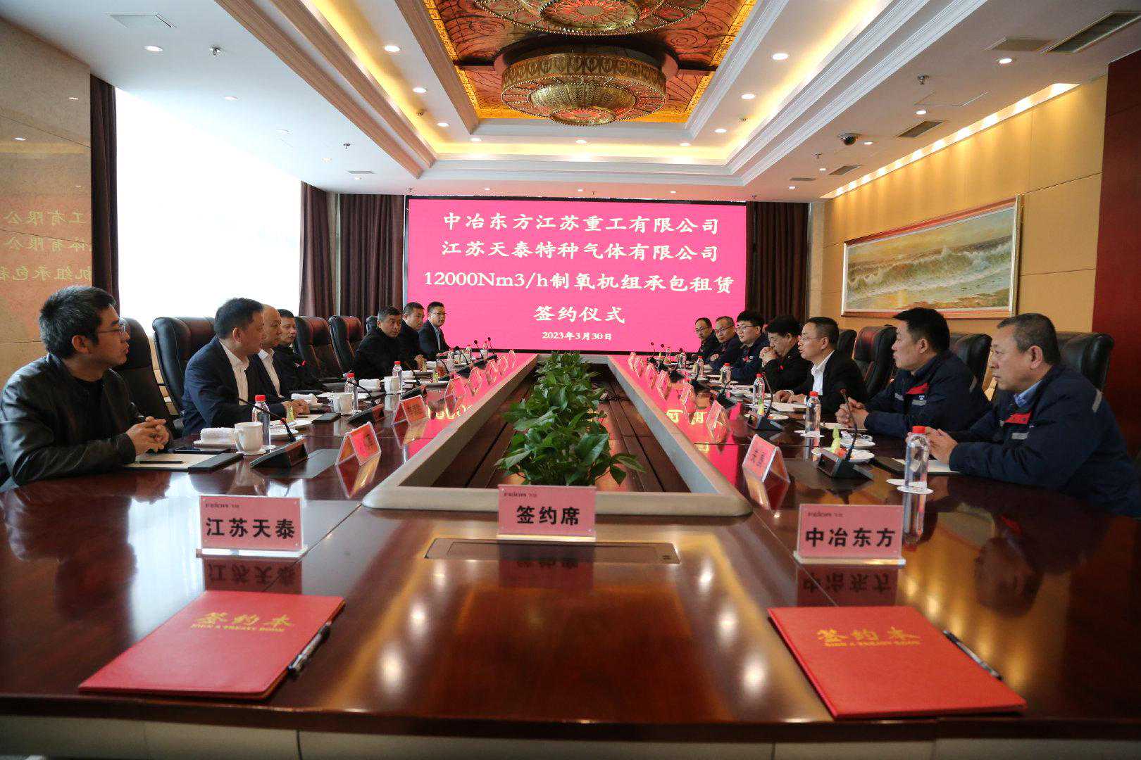 3月30日上午,江苏飞达集团旗下中冶东方江苏重工有限公司(简称“中冶东方”)与江苏天泰特种气体有限公司(简称“江苏天泰”)成功签署12000Nm3/h制氧机组承包租赁协议。签约仪式由江苏飞达集团副总经理查显文主持。 中冶东方总经理欧阳晨、江苏天泰副总经理李德胜代表双方签约 江苏天泰总经理杨坚介绍了12000Nm3/h制氧机组承包租赁项目规划情况以及发展前景,承诺将严格按照双方约定、紧密配合、协同推进、加快办理各项手续,满足中冶东方生产运营中的用气需求,为江苏飞达集团的经济发展做好服务工作,并希望借此平台实现企业双方及社会效益的共赢。 华兴和投资基金首席执行官李刚是此次双方合作的促成者,他从一个投资人、飞达见证人和未来布局人的角度,对项目合作后的发展前景提出了三点要求:一、必须降低运营成本,提高运营效率;二、必须确保安全运营、降低能耗;三、必须无条件确保氧气在生产过程中的充分供应。 中冶东方总经理欧阳晨对江苏天泰的支持与配合表示感谢,并表示,此次签约夯实了双方合作的坚实平台,必将进一步增强中冶东方产品的市场竞争力。中冶东方将与江苏天泰加强沟通交流,精诚协作,共同携手开创美好的未来。 江苏飞达集团董事长朱国平在致辞中对与江苏天泰的合作充满信心,并提出了三点希望:一、希望双方秉承合作互信的理念,相互磨合,相互融合;二、希望双方管理团队互相学习,互通有无,共同打造充满生机和活力的市场;三、希望双方发挥各自优势,充分站在对方的角度考虑问题,共建合作未来,共创合作辉煌。 出席签约仪式的还有中冶东方生产、安全、采购、制氧等相关部门负责人。