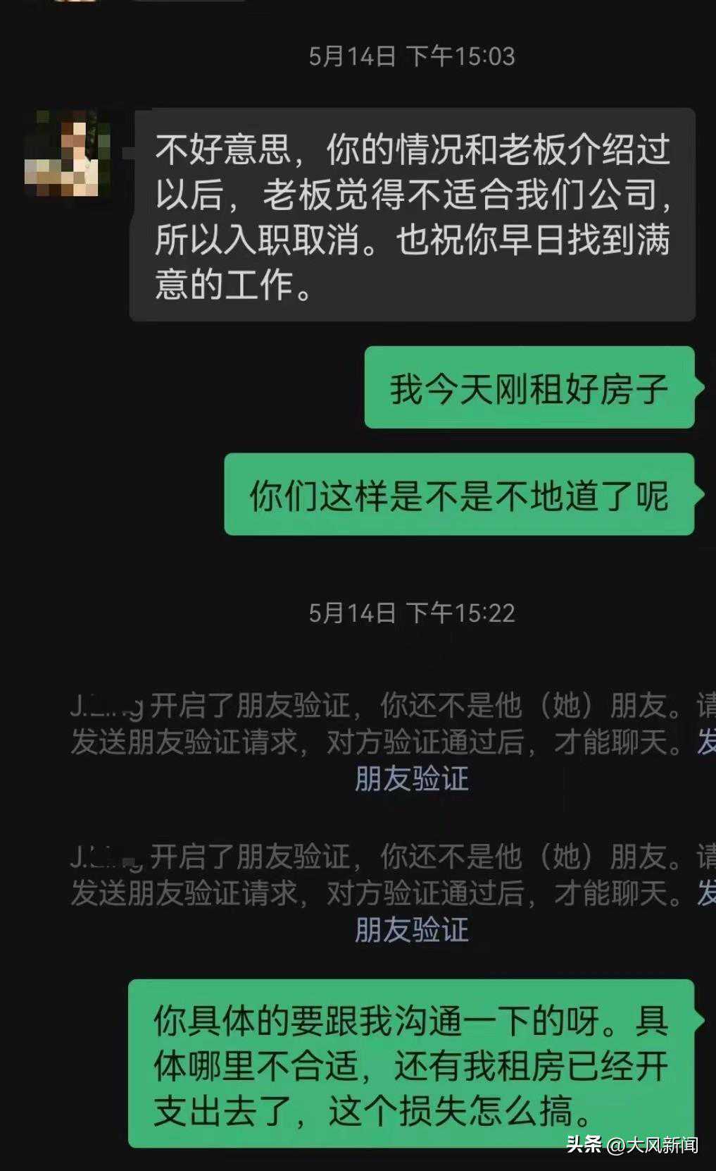 毕业生拿到公司Offer后便赶去上海租房,没想到下午就被HR告知“入职取消”,她花钱租房的损失怎么办? 小盘(化名)是国内某高校艺术设计专业应届毕业生,今年4月底,她通过“Boss直聘”软件联系到上海某公司。根据“设计师”岗位招聘信息显示,薪资为8000元至1.2万元,学历不限、经验不限。 小盘和该公司HR沟通后,认为该公司的业务和她的专业方向比较符合,便有了入职意向,“因为有事情,我跟HR说,因为毕业设计还未完成,得等到5月以后才能入职。”5月6日,她前往上海参加该公司面试,“当时聊得还不错,HR表示会给我发一份笔试题,如果做的效果没问题,就可以来上班了。” 根据聊天记录显示,5月6日下午4时57分,小盘微信表示“面试题能现在发我吗?我想看一下,电脑不在身边,得协调一下时间。”5时49分,HR表示“复试题目已发,注意查收,请在3日内做完回复,谢谢。”后双方还沟通了答题回复的时间。 下午4时37分,HR询问“你最快什么时间可以入职?”小盘表示自己5月20日需要参加学校答辩,但可以先线上参与工作。晚9时30分,HR表示“今天有点晚了,明天下午电话沟通薪资、入职时间等问题吧。” 5月12日下午4时许,小盘和HR进行了电话沟通。她说,自己和HR沟通后,表示实习期薪资是8000元,转正后更高,并约定了入职时间,“我原计划毕业答辩后再入职,但HR很急切地希望我入职,说他们的项目缺人……” 5月13日下午,HR和小盘围绕毕业时间、三方协议、薪资具体金额等内容,在微信上进行了沟通 5月13日下午5时许,HR通过微信向小盘发送的《录用通知书》。随后,双方围绕小盘的毕业时间、签订三方协议、薪资具体金额等内容进行了沟通。小盘说,当时她希望HR先把学校的三方协议签了,但对方表示“已经选择了一起共事,彼此的信任还是要有的,你来的时候,带过来会帮你处理的……”她看HR这样说,便决定即可准备入职事宜。 5月14日上午,小盘前往上海租房,选中房子后支付了8777.93元的租金 5月14日上午,小盘前往上海租房,一上午看了十套房子,并在选中房子后支付了8777.93元的租金,“签了1年的合同,一次性交近9000元房租。” 小盘说,原以为工作稳定了,结果当天下午3时许,HR突然发来微信表示,因为老板认为她不适合他们公司,所以“入职取消”,“我心里一下空了,刚花了近9000元租房子,结果被告知入职取消了……我想理论,但对方将我拉黑。” 小盘在上海租好房后,当天下午便被HR告知“入职取消”并拉黑 5月16日,华商报大风新闻记者联系到小盘,她说,因为被HR“放鸽子”,让她不仅要承受经济上的损失、时间的浪费,还产生了很多问题需要她花时间去处理,“即便顺利转租,我也要承担1500元的违约金损失,感觉很糟心……” 小盘说,如果入职,这是她的第一份正式工作,但该公司不顾契约精神,私自取消了“入职”,“如果公司不满意,完全可以不用发Offer,我是看到Offer后,才选择去租房子的。如今该公司的‘爽约’对我造成了经济损失,还反手将我拉黑,我无法接受,我准备收集资料,走民事诉讼,希望维护自己的权益。” 根据《录用通知书》显示,现诚挚邀请您正式加入本公司。本公司将在您按照本通知书的要求提交合格的资料报到后录用您……您将在本公司担任设计师一职,试用期为三个月,本公司将与您订立固定期限劳动合同……特别提醒,您对本通知书的确认、接受,并不表示双方劳动关系的建立,劳动关系的建立时间以劳动合同的生效日期为准…… 根据天眼查显示,该公司成立于2018年3月21日,公司法定代表人焦某,注册资本200万元。华商报大风新闻记者从小盘处获悉,该公司法定代表人姓名与HR姓名相同。 5月16日下午,根据“天眼查”提供的联系方式,华商报大风新闻记者多次尝试拨打该公司电话,但始终无法接通。随后,记者拨打了该公司HR的电话,但始终无人接听。随后,记者向该HR发短信表达采访意图,但截至发稿,无回复。 核心一:应届毕业生收到《录用通知书》后,公司以“老板认为不合适”为由“取消录用”是否合法? 北京市盈科(西安)律师事务所高级合伙人、陕西省清华大学校友会常年法律顾问、律师刘东晨说,根据《民法典》第四百九十五条第一款规定:“当事人约定在将来一定期限内订立合同的认购书、订购书、预订书等,构成预约合同。”因此,在本事件中,公司的行为不合法。 刘东晨说,公司发出《录用通知书》,应届毕业生收到通知书后愿意在未来与公司签订劳动合同,并为此进行了租房准备,双方意思表示一致,属于双方形成了预约合同,即约定在应届毕业生毕业后双方建立劳动关系。此时双方的预约合同已经依法成立,故公司单方面“取消录用”属于违约行为。 核心二:非应聘者原因,因公司单方面“取消录用”导致当事人租房等产生经济损失,能否要求公司赔偿?如何进行赔偿? 刘东晨说,根据《民法典》第四百九十五条第二款规定,“当事人一方不履行预约合同约定的订立合同义务的,对方可以请求其承担预约合同的违约责任”之规定。本事件中,应聘者依法可以要求公司承担预约合同的违约责任,赔偿应聘者因租房等产生的经济损失。但由于双方形成的是民事法律关系,而非劳动合同关系,因此维权需向人民法院提起诉讼。 另外,作为应届毕业生遇到此类问题,应聘者应首先向学校有关部门反映,由校方出面解决协调;同时,应聘者还可以向公司所在地的