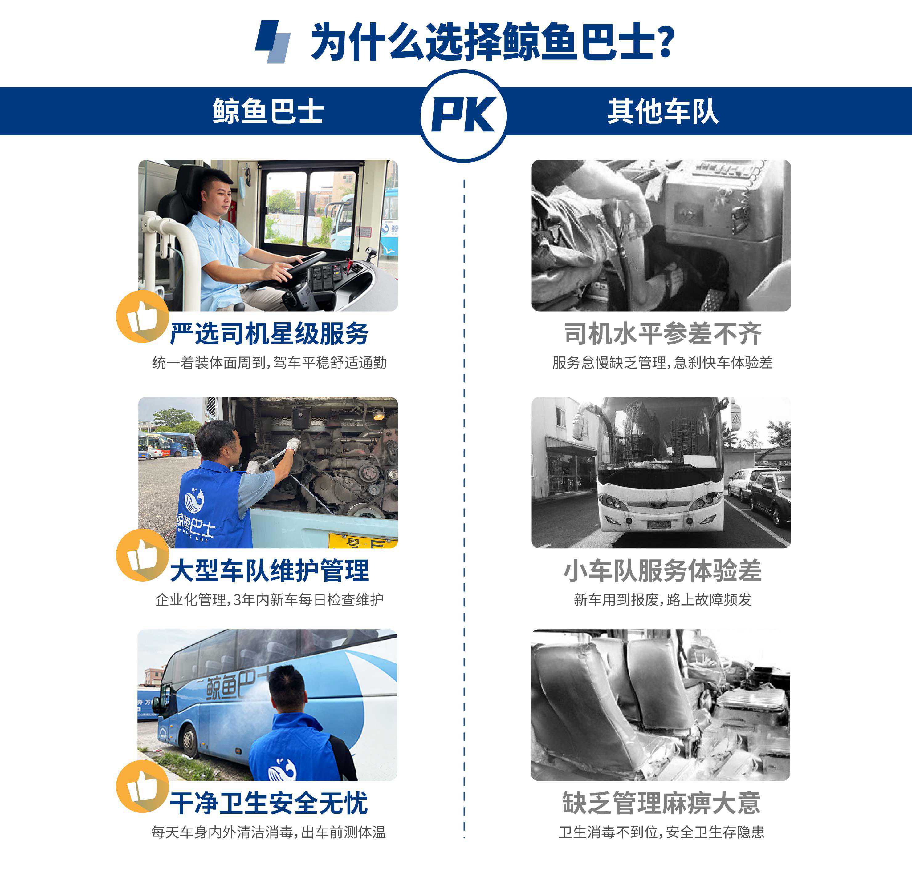1.专业经验丰富:广东鲸鱼巴士拥有14年的专业大巴包车服务经验,以其卓越的服务质量赢得了广大客户的好评。