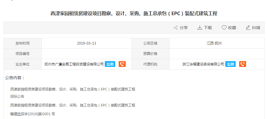好消息! 西津家园租赁房正在招标公告! 工程名称:西津家园租赁房建设项目勘察、设计、采购、施工总承包(EPC)装配式建筑工程。 项目总投资:约63160.99万元;本工程投资限额为36148万元 工程建设地点:项目位于纬六路以南、经三路以东地块,区间路以北。 工程类别:房建工程住宅楼 工程性质:新建工程 建设规模及内容:项目总用地面积37333.33平方米,总建筑面积99301.24平方米,容积率不大于2.00,其中住宅建筑面积70009.95平方米,地下室建筑面积23668.12平方米,共计668套;商业建筑面积4111.09平方米,社区养老用房175.79平方米,物业管理用房212.63平方米。住宅、养老用房、社区管理用房、物管用房、室外给水排水工程、消防工程、人防工程、供配电工程、装修工程、围墙、小区道路及综合管线工程、智能化、绿化及照明工程等。装配率不低于50% △网络图 据悉,抚州市房产管理局2019年继续加快推进市中心城区11个项目建设。其中,4个棚改安置房项目(3862套);6个租赁住房项目(含公租房),共6222套;1个人才公寓建设项目(348套)。 ps:该项目投标截止时间为2019年4月29日上午9:30时整