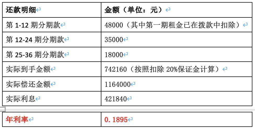疑点1:抵押贷款还是融资租赁? 结合多位爆料人的投诉案例,南都记者梳理出以下六大疑点。第一大疑点,聚焦抵押贷款还是融资租赁。 近日,来自重庆的曾丽(化名)向南都记者投诉称,2023年12月28日,其父亲曾先生出于资金周转需求想要办理车辆抵押贷款,而后被业务员介绍去仲利国际融资租赁公司在重庆设的一个临时点,“在签合同前,仲利本来说的是车辆抵押贷款,后面正式签约却变成了融资合同。” 南都记者从曾丽提供的《车辆融资租赁合同》和《买卖合同》中了解到,与其父亲签约的公司名为“仲津国际租赁有限公司”,该公司为仲利国际租赁公司的子公司,双方签订的是融资租赁合同,而非车辆抵押贷款合同。 无独有偶,在黑猫投诉平台上,也有多名消费者反映被仲利国际以“车辆抵押借款合同”为由“欺骗”,“到了签合同的时候就成为了融资租赁合同了”,甚至有消费者反映,“仲利国际工作人员说这就是车辆抵押贷款”。 天眼查显示,仲津国际租赁有限公司成立于2011年,总部位于天津市,而其母公司仲利国际租赁公司成立于2005年,总部位于上海市,二者法定代表人均为陈凤龙,二者的经营范围均包括融资租赁业务。 2020年5月26日,中国银保监会发布《融资租赁公司监督管理暂行办法》,其中第8条规定,融资租赁公司不得“发放或受托发放贷款”,禁止了融资租赁公司从事贷款业务。 上海中联(广州)律师事务所高级合伙人、广东省律协行政法律专业委员会委员、广东省地方金融监管局法律顾问吴宇志律师向南都记者介绍,单纯从融资租赁合同条款来看没有太大问题,但是如果当事人只是想做“车抵贷”,却被仲利方面蒙骗进行融资租赁的话,仲利则涉嫌非法放贷问题,需要结合具体情况分析。如若涉及到虚假宣传的情况,当事人可以向当地金融监管部门或市场监督局投诉。 疑点2:贷款年利率高达20%以上? 从多位投诉案例来看,这些借款人大都是抱着抵押贷款的心态与仲利国际签约融资租赁合同。对此,有知情人士向南都记者透露,融资租赁公司表面上收取的是售后回租的租金,但倘若作为利息来看,利率远高于法律规定的民间借贷利率上限。 “以100万核准金额、分36期还款计算,放款前需要先扣除最高20万元履约保证金、9000多元销项税额、第一期租金4.8万元,那么实际到手可能只有74万元。36期还款(租金)中,第2-12期的分期款为4.8万,12-24期的分期款为3.5万、25-36期的分期款为1.8万。那么实际偿还金额116.4万元,由此可以计算出年利率高达18.95%。”上述知情人士向南都记者透露。 记者根据知情人士向南都记者提供的仲利国际租赁有限公司内部规则整理。 在投诉平台上,也不乏类似情况,如一名来自湖南的消费者孙敬公开反映,通过仲利国际“借款金额为74000元,扣除手续费740元,扣除保证金3700元,实际到账金额为69560元整。还款方式为:分36期还款,第1-12期,每期还款3640元;第13-24期,每期还款3130元;第25-36期,每期还款2704元。”以此计算,该消费者从仲利国际融资到手的金额为69560元,分36期还完,三年内需要偿还总金额113688元,累计利息高达44132元,年利率21.1%。 曾丽向提供的《融资租赁合同》显示,其父亲的49000元融资分36期还款,第1-12期每期租金2081元,第13-24期每期租金1893元,第25-36期每期租金1704元。《车辆买卖合同》显示融资49000元,但曾丽表示,其父亲实际到手仅有40080元。以此计算,曾丽父亲三年内需要偿还总金额68136元,扣除到手的40080元后,利息高达28056元,年利率高达23.3%。 2020年8月20日,最高人民法院发布《最高人民法院关于修改的决定》,调整民间借贷利率的司法保护上限,以LPR的4倍为标准取代“以24%和36%为基准的两线三区”的规定。以2020年7月20日发布的一年期贷款市场报价利率3.85%来计算,民间借贷利率的司法保护上限为3.85%×4=15.4%,与24%和36%相比有较大幅度的下降。 而根据中国人民银行授权全国银行间同业拆借中心公布,2024年4月22日贷款市场报价利率(LPR)为:1年期LPR为3.45%,5年期以上LPR为3.95%。这意味着民间借贷利率法定上限也继续下调,降到13.8%,最高利息高于同期LRP的4倍的将不受法律保护。 疑点3:近万元GPS费被谁划走? 除了签约前期对融资租赁和抵押贷款的概念表述不清外,仲利国际在收费环节也被投诉存在多处不合规。曾丽向南都记者介绍道,“当时约定的租赁金为49000元,仲利后来在进行合同相关‘GPS费用’扣款时,又通过‘苏宁易付宝-上海合墨数据’扣款8920元,明细分类显示为‘家私家电’,最后实际只收到40080元。” 她还透露,“实际扣费款项不明,仲利那边没有给明细,甚至连个收据都没有。”而在她后续咨询为何收取这笔费用时,代表仲利国际方面的催收人员则表示,“应该是中介收的,不是我们收的,自己找收的人去。” 曾丽提供的“GPS费用”付款截图。 公开资料介绍,上海合墨数据成立于2017年,是一家信贷全周期科技应用服务商。此前有媒体报道称,上海合墨数据主要为贷款中介提供扣款通道,可直接从用户账户划扣资金,以此来防止信贷跑单。南都记者浏览曾丽提供的合同,却并未找到合墨数据相关的内容。 对此,仲利国际方面回复称,“我司无与上海合墨数据开展合作业务,也并未透过第三方贷款中介进行收费。另我司为融资租赁公司,即使有所往来的明细分类,也不会具有家私家电的费用明细类别。” 据悉,车辆融资租赁公司在车上安