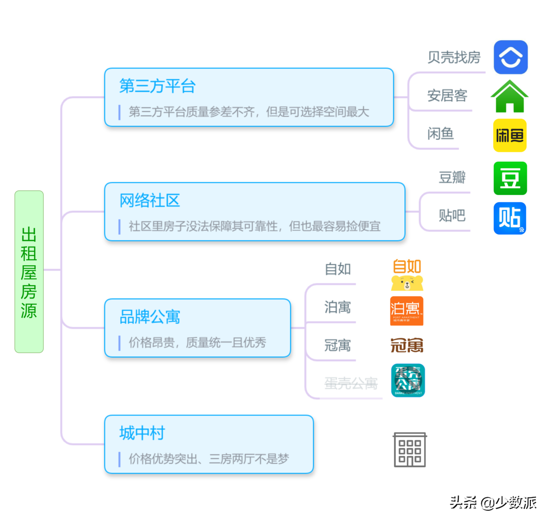 应届大学生出来社会踩的第一个坑,很可能不是进了不如意的公司,而是迁入了一家坑人的出租房,毕竟公司不好还能裸辞,而租房,大概率要押二付一,对待毕业以来买的第一个「大件」,当然需要考虑的齐全。 毕业后时不时都会有身边朋友租房时考虑因素有缺漏,给自己带来了很多麻烦的事情发生。这是他们的用户故事。 朋友A:对比两个房子时为了便宜三百块钱租了较差的地方,结果发现用的是商业用电,差价就把房租补回来了。 朋友B:打算拿年终就跳槽,但房子租期已经结束了,发现只能退租或者再续一年,最后提前退租,另外搬家找短租房(一般短租价格都比较贵,但这朋友去我家住了)。 朋友C:租了朝北住了一个月受不了,结果房东不支持转租,只能委屈自己住满一年或者放弃押金走人。 朋友D:周末看房时预演了从公司到出租屋的通勤场景,只需要坐20分钟公交,结果工作日等四趟车都上不去公交,只能每天踩单车。 区位选择时需要考虑包括交通条件、周边资源、以及噪声、治安等个性化的需求。其中对「打工人」来说最重要的莫过于每日依赖的交通条件了。而这里针对交通条件和周边资源做出建议,一是因为对大部分人来说都非常重要,二是因为两个方面都可以通过远程「看房」,不需要每个房子都大费周章地实地考察。 大部分人在选择区位时都已经确定了上班地点,考虑到通勤所用交通工具和时长,我曾经是把看上的房子逐个在地图上搜索一遍到公司的路线,效率非常低。这是少数派上一位作者@daibor开发出来的网站工具,固定上班地点之后选择居住点,神器一般的存在。 搜索地址之后就能直接看到你方便上班的地点啦 但需要注意的是,上下班高峰期的地铁和公交即便方便,你也不一定能挤进去。就生活在广州的个人经验而言,我宁愿挤公交,挤地铁的感受是:从通勤开始一天的坏心情。如何知道地铁挤不挤,一线城市一般都有官方地铁app,如「广州地铁」,但经过粗略体验发现不是每个城市的地铁app都那么完善,这时候可以使用「玩转地铁」,可以查看大部分有地铁的城市路况。 地铁拥堵查询 放一下陪跑的主流地图app显示的地铁拥挤程度,都没有显示表达满载的图标,个人觉得有点误导。 三大主流应用的地铁拥挤程度查询功能 而当时的实际情况是这样的,等了两趟车才可能挤进去。 周边资源也能通过地图大致能看到,推荐使用「美团」、「大众点评」看看周边的商业资源是否能满足分布。把「美团」当成一个简单版的兴趣点查询工具。 「美团」周边商业资源查询 确定好区位后,就是找房子了,这里总结四种出租房的类型,图中举例不全,如第三方平台的在手机应用商店搜索租房就能看到其他选择,诸如「58同城」、「链家」、「蚂蚁租房」等,品牌公寓还有「有巢」、「魔方生活」等选择。 大致了解四种渠道后,就能感受得到经济性上明显是城中村网络社区第三方平台品牌公寓,而质量的顺序刚好是调过来。 数量上第三方平台选择永远是最多的,而品牌公寓在一二线城市以外就非常稀少了,即便在一线城市数量也不能覆盖到每个区位。 保障性上,品牌公寓会注重品牌的宣传,不会因为运气遇到了不友善的房东,误签各种霸王条约。除了最近暴雷的蛋壳公寓(平台倒贴租金给房东,直观感受就是物美价廉,我当初也差点入住了),品牌公寓仍然是最具有保障性的,而第三方平台作为整合房源的曝光渠道,对整个租房流程都有做基本的规范,位于最后的网络社区,里面的人鱼龙混杂,也有中介滥竽充数,一般人难以分辨是房东,是二手房东,还是中介。虽然时而有大便宜,但也是骗子最容易寄生的渠道了。 房源多角度对比 通过对三个最常见的第三方租房平台对比,值得注意的区别: 房源:体验中发现「安居客」房源更多,但假房源也更多,使用中发现有些房源用的是同一个比较好看的房源的照片,参数却不一样(朝向、楼层等),联系后发现实际照片上的户型早就出租,只是留下来好看的照片吸引人联系(遇到过有好几个中介还美其名曰防止同行竞争盗图),联系后就劝说到现场看房而不是讨论图上房源,这时候就很可能是挂羊头卖狗肉的假房源。我还没发现平台对于这类假房源是有任何的打击机制。 VR/直播看房:「贝壳找房」和「安居客」都有VR看房,VR看房时可以选择同时与经纪人通话,相当实用。其中「贝壳找房」支持VR看房的房源占比更高。同时只有「安居客」支持直播看房功能,但看房需要的是对比,直播看房的数量相当有限,不建议依赖直播找房,这个功能更多是服务于着急出租的房东。 中介费:中介费常见的由房东和租客各支付半个月共一个月的费用给经纪人。但也有很多免中介费的房源,免中介费房源的数量上是「闲鱼」「贝壳找房」「安居客」。 社区直接用「豆瓣」就好了,搜索地区名+租房的小组,如XXX租房。而「贴吧」上活跃度和资源集成上都和「豆瓣」不在一个等级,不需要看了。需要注意「豆瓣」上的不都是房东直租或房客转租,也会有很多中介。 豆瓣小组页面 公寓品牌的品质都控制得比较统一且平均质量高,除了较高的价格,一般还会有更多的额外费用,如每个月固定的清洁服务费。预算充足图省事的可以优先选择这类房源,但由于数量较少,就算想住公司附近也不一定有。 越来越多的城中村房源也会被房东发布在第三方平台、网络社区上,但仍然