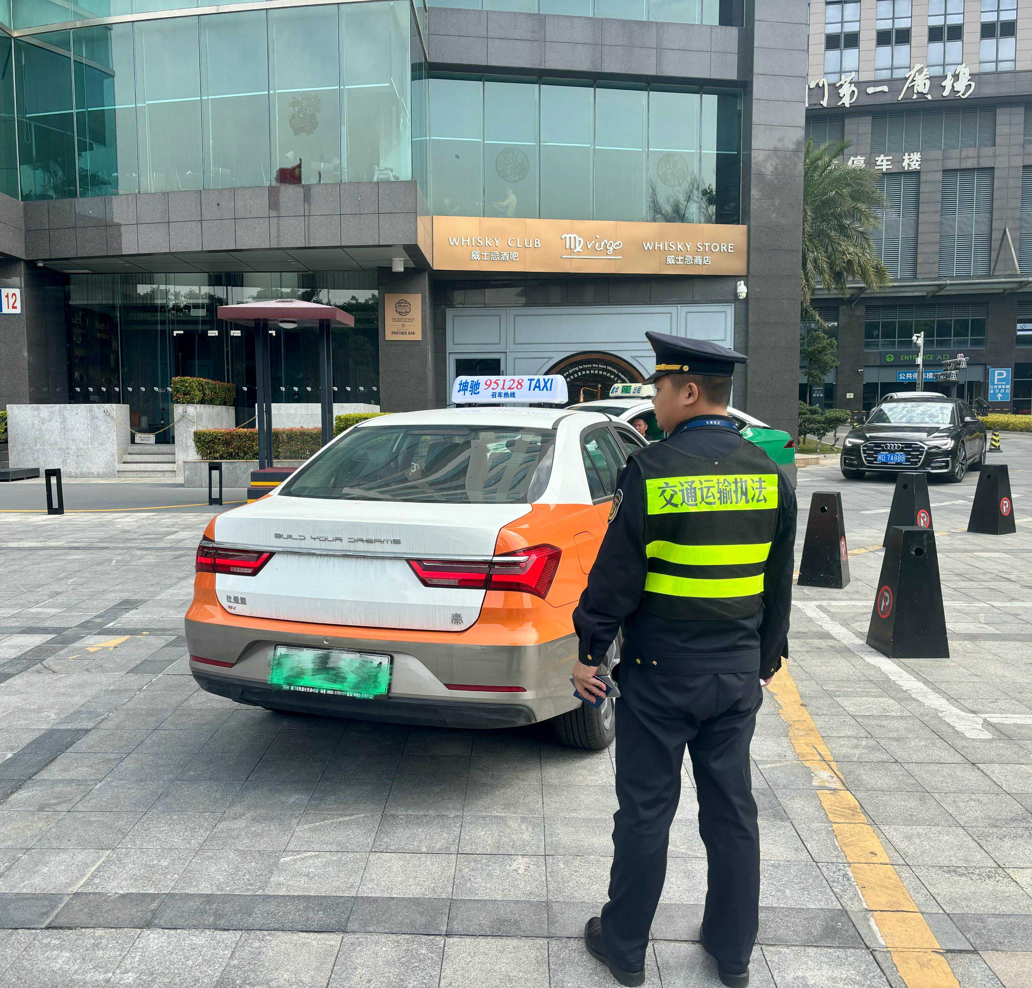 图为执法人员在“环岛路”一带开展执法检查 图为执法人员在酒店旁发现的“无证”车辆 执法人员上车检查驾驶员的证件和车载设备时,发现在正常营运的出租车副驾驶座前都有一个摆放服务监督卡摆台的位置,但这部出租车前排却一片空白。 图为所拍的车前排无服务监督卡 执法人员询问该车驾驶员雷某,雷某支支吾吾称该车是新车,未及时制作服务监督卡摆台。但执法人员进一步要求其出示证件时,雷某却只出示从业资格证,始终无法提供服务监督卡。 雷某的怪异举动让执法人员更加起疑,经“交运通”执法系统后台核查,原来该驾驶员雷某的服务监督卡目前是处于锁定状态,禁止从事营运活动。 据相关执法人员介绍,出租车驾驶员的服务监督卡载明出租车驾驶员的姓名、上岗证号、所属出租车企业以及服务监督电话,依照法规出租车驾驶员上岗就必须亮证服务,但驾驶员雷某的服务监督卡已被锁定,依照法规不得驾驶出租汽车进行营运活动。而驾驶员雷某最终也承认当天上午已从事数趟载客经营活动。 《福建省道路运输条例》 目前,根据《福建省道路运输条例》的相关规定,该车驾驶员雷某因未取得有效服务监督卡驾驶出租汽车从事经营活动的违规行为已被交通执法部门依法立案,驾驶员雷某将面临500元以上2000元以下的行政处罚。 通讯员:洪小艺; 编辑:林少婷; 审核:傅秋萍;