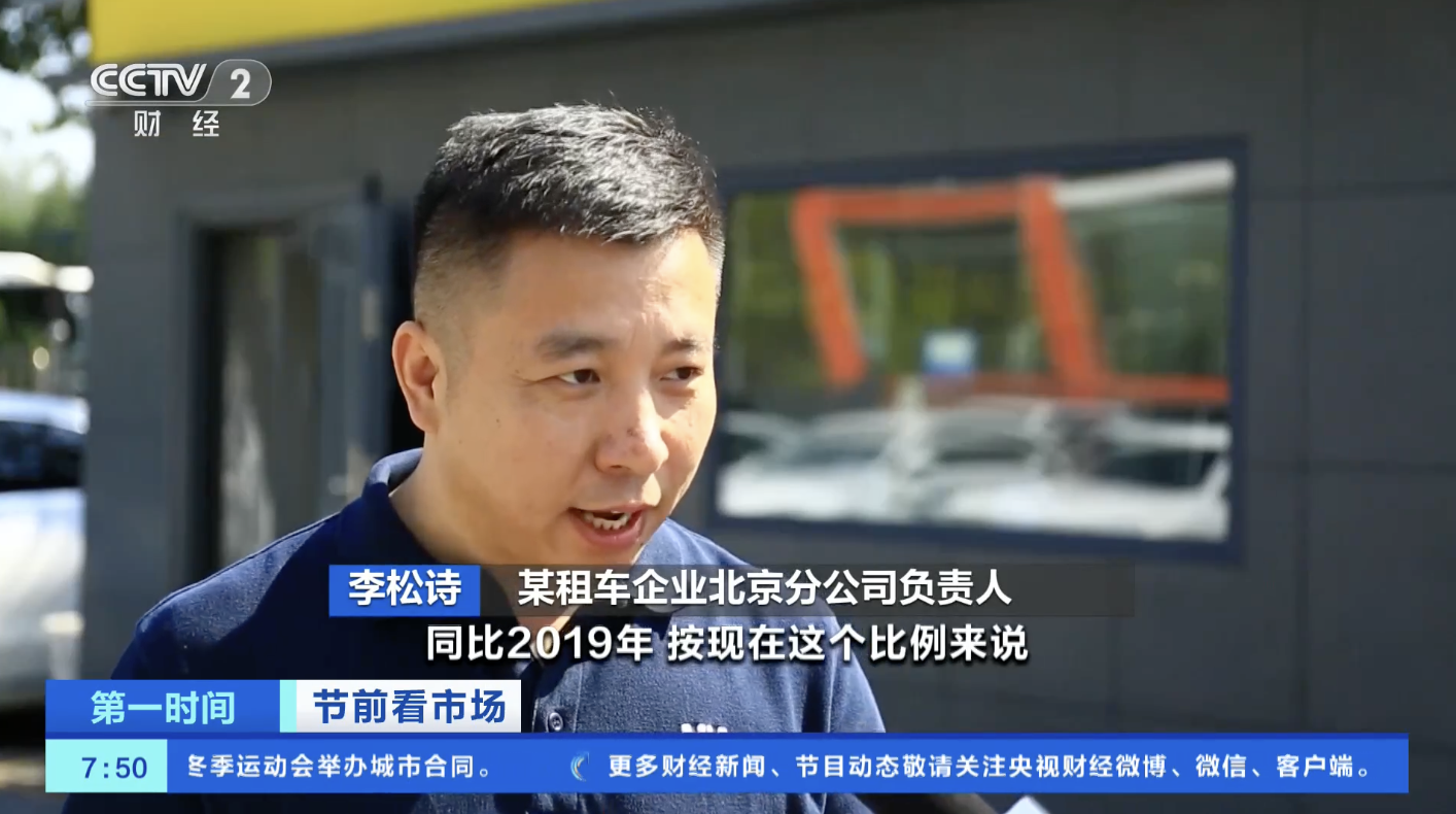 (央视财经《第一时间》)今年中秋、国庆假期,国内汽车租赁市场十分火爆。以北京为例,假期租车预订量,相比2022年同期增长超200%。 这几天,在国内一家大型汽车租赁企业的北京部分网点,前来租车的客户接连不断,高峰期间几乎每分钟都有客户前来提车。 某租车企业北京分公司负责人李松诗:同比2019年,按现在这个比例来说,订单量已经增长40%左右了。临近“十一”前三四天,可能还会有一个爆发期,现在已经预测会增长50%左右。 在另一家汽车租赁企业的首都机场网点,记者了解到,今年国庆期间,这家企业订单同比2022年增长超过了300%,同比2019年增长了超过70%,创下了历史最高水平。 据了解,为满足节日市场需求,眼下包括汽车租赁企业、网约车平台在内的国内各大供应商,正积极筹备增加车型和车队规模,扩大适合居家旅行的越野车和大型商务车的占比,并做好用车市场集中地区、集中时段的预测。 某网约车平台安全部负责人曲晓楠:发挥数据与科技的力量,充分调度我们的车辆到需求最集中的地方,实时感知到底哪里需求比较旺盛。 交通运输部数据显示,今年以来,国内汽车租赁订单不断呈现大幅上涨态势,年初和暑期市场持续火爆。其中,休闲旅游占比超过50%,100公里-200公里的短途休闲旅行租车呈现明显增长态势。 某旅游在线平台公关事务部总监陈理楠:比如新疆、西藏、云南、贵州都是自驾的最主要的目的地之一。 转载请注明央视财经