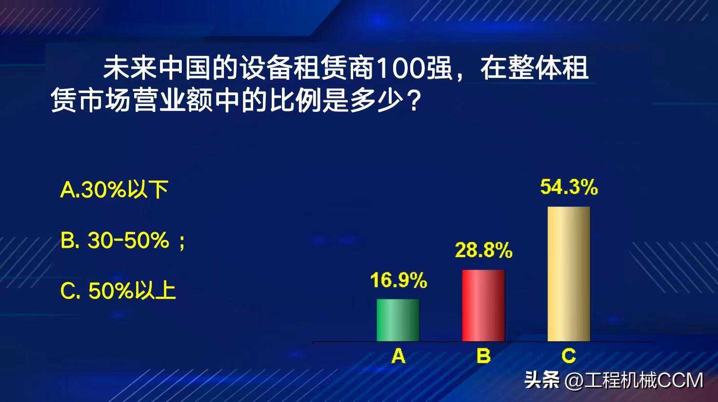2022年11月21日,2022全球工程机械50强峰会发布了“2022中国吊装100强企业”、“2022中国塔机租赁商100强”、“2022中国高空作业设备租赁商100强”以及“2022中国基础施工企业100强”等多份终端用户榜单。 近年来,随着产业发展,中国工程机械各应用领域已形成一批头部施工租赁企业,大会组委会根据企业设备规模、施工专业能力、品牌影响力等,推出本届百强榜单。 进入各领域榜单的100强企业,是行业中实力突出的佼佼者,更是中国施工租赁领域的主导力量。 会上,来自各个领域的500余名施工租赁企业代表中有54.3%认为未来中国的设备租赁商100强企业,将占据设备租赁市场营业额的一半以上。进入百强阵营,不仅是品牌实力的印证,更是产业地位的重要象征。 在设备选择上,有59.6%的用户代表表示在采购某一类设备时,会同时选择2个品牌。另外,58.7%的用户代表认为对单一品牌的忠诚度还需要5-10年形成。