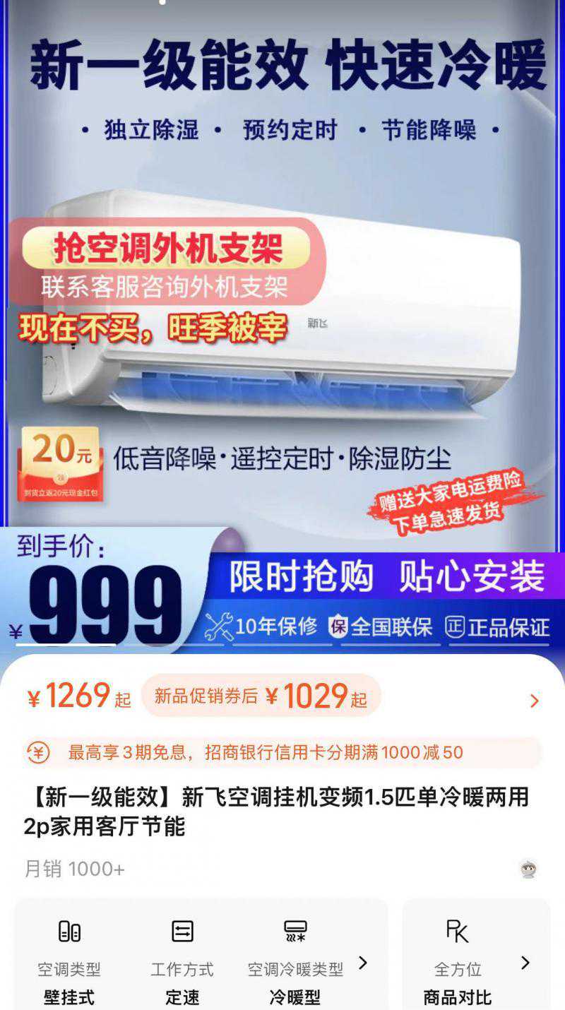 日前,“五级能效空调”成了社交媒体上的热词。不少有租房经历的网友纷纷吐槽出租屋家电耗电量大。北京青年报记者走访市场发现,在北京的线下家电卖场很难找到五级能效空调,但是在线上,这类高能效的空调不仅有,有的销量还不低,究其原因大多是因为其价格低。但确有商家为了销量,却在网售五级能效空调时,在文字描述上做手脚。 网图 “五级能效空调”被吐槽北京线下市场难觅 众多网友加入了讨论,有的还分享了自己的经历:“房东这样做是给大家省电,因为还没开空调,心就凉了一半”“一晚上就能吹走15度电”“把空调温度调到最低,还没有人家正经空调开26度凉快”“我之前去看房,家电全包,所有家电都是五级能效:空调五级、洗衣机五级、抽油烟机五级、冰箱五级……” 为什么房东如此执着的追求五级能效的空调?有网友称是为了“赚电费差价”。有网友称房东收取电费,根本不按照当地给居民的电价收费,有的甚至谎称是商业用电,电价高达每度1.5元。而有的地方实行峰谷电价,一般晚上电费低,但是房东却统一收费,比峰时电费收的还高。“房东巴不得你多用呢,反正用得多他赚的多。” 但是这种情况在北京的租房者中却不多见。“房东都是把电卡给我们,我们自己充电费。”一位北京的租房者表示。一些租房者也表示,即使是跟中介签约而非直接与房东,也是用电卡自己买电。 “一般是二级、三级,有的是房主原本的空调,也有一级的。”一位已经有十余年租房经验的徐女士告诉北青报记者。这一说法也得到部分北京地区租房中介的证实。 “我都没见过五级能效的空调。”一位中介表示,他们公司刚刚装修了几间出租房,空调基本都是三级能效的。 北青报记者走访一些线下空调销售点发现,基本没有发现低于三级能效的空调产品。“一般消费者会追求一级能效,而且之前还有节能补贴,但就到二级。我们卖场里连三级能效的空调都没进,就别说五级的了。”一家家电卖场的工作人员表示。 但北青报记者搜索电商平台发现,五级能效空调不仅并不难找,而且部分品牌的月销量已经达到了3万余单。“没有考虑过能效的问题,就是因为它便宜,一台也就几百块,装出租屋够用了。”一位购买了数台该款空调的网友告诉记者,并不像网传房东购买这类空调都是为了赚电费,主要是为了装修的成本低。 确实,北青报记者发现,同样都是1.5匹、品牌和基本用件也相同,五级能效的空调比一级能效便宜了近600元。而网上更是有五级能效大一匹的空调,售价不到900元一台。 写着“一级”其实是“五级”网售低能效空调玩文字游戏 虽然价格便宜,但是更多的消费者还是更原以为节能家电买单,因此在一些电商平台的空调销量排行榜上,五级能效空调很少能上榜。而位居前三的均是一级能效空调。 消费者追求节能产品,也喜欢高性价比,这也让一些商家动了歪心思。北青报记者发现在很多电商平台上搜索“一级能效空调”,相比于普遍标价在2000元以上的款式,一些售价1000左右的空调很吸引眼球。不过,相比于众多一级能效空调将其作为卖点,刻意在商品介绍的各个角度强调其“一级能效”等级,这些“便宜”的空调虽然在商品标题中写有“一级能效”字样,但是整个商品的介绍页面均没有显示该空调明确的能效等级。 也有一些商家则把多款不同能效的空调放在一个商品链接中,而在商品图片上文字称其是“一级能效”,但其实该链接下的20个商品中,仅有4个是一级能效。其主推款商品,也就是价格最低的款,没有任何能效明示,只有咨询客服才能获悉是“五级能效”。 一级和五级不同能效差在哪? 那么,五级能效的空调到底比一级能效差在哪?简单的来说就是在单位时间内五级能效的空调更耗电。耗电大会不会制冷效果也会更好呢?并不是。国家在2005年颁布了空调产品能效比的标准,空调能效是额定制冷量与额定功耗的比值。这个比值越大能效等级越高,一级是最高能效,而五级是最低,也是市场准入的底限。所以,五级能效也就代表着消耗同样多的电产生的冷气,比一级能效的空调少。 那么,到底两个能效等级的空调能差多少?根据GB21455-2019,规定的1匹空调的一级能效为高于5.0,而五级能效的底限为3.3。 比如一个房间10个平方,1匹一级能效的空调一个小时大约是2500瓦制冷量,等于是500瓦的功率(2500/5),也就是一小时耗电0.5度。同样是一小时2500瓦的质量制冷量,五级能效等于是757瓦功率(2500/3.3),也就是一小时耗电0.76度。 也就是说如果一天用10小时空调,一个月用30天的话,五级能效空调比一级能效要多花近80度的电。4个月的夏季算下来就是320度电。而五级能效制冷效果也更差,可能一小时能无法达到跟一级能效产品一样多的制冷量也因此会更加费电。 业内人士表示,目前空调行业依靠变频、高效换热、智能控制等技术不断提升空调的能效比。这也就代表着一级能效的空调不仅节能省电,还有着最新且成熟的技术在其中。而消费者选购空调时,从能效入手可以说是最快捷的挑选方式之一。而目前各大品牌技术成熟,一级能效空调价格也早已不是“高高在上”。从长远看,不论是使用寿命还是后期电费,一级能效空调都比五级能效更具性价比。 文/北京青年报记者张鑫 编辑/田野 【版权声明】本文著作权(含信息网络传播权)归属北京青年报社所有,未经授权不得转
