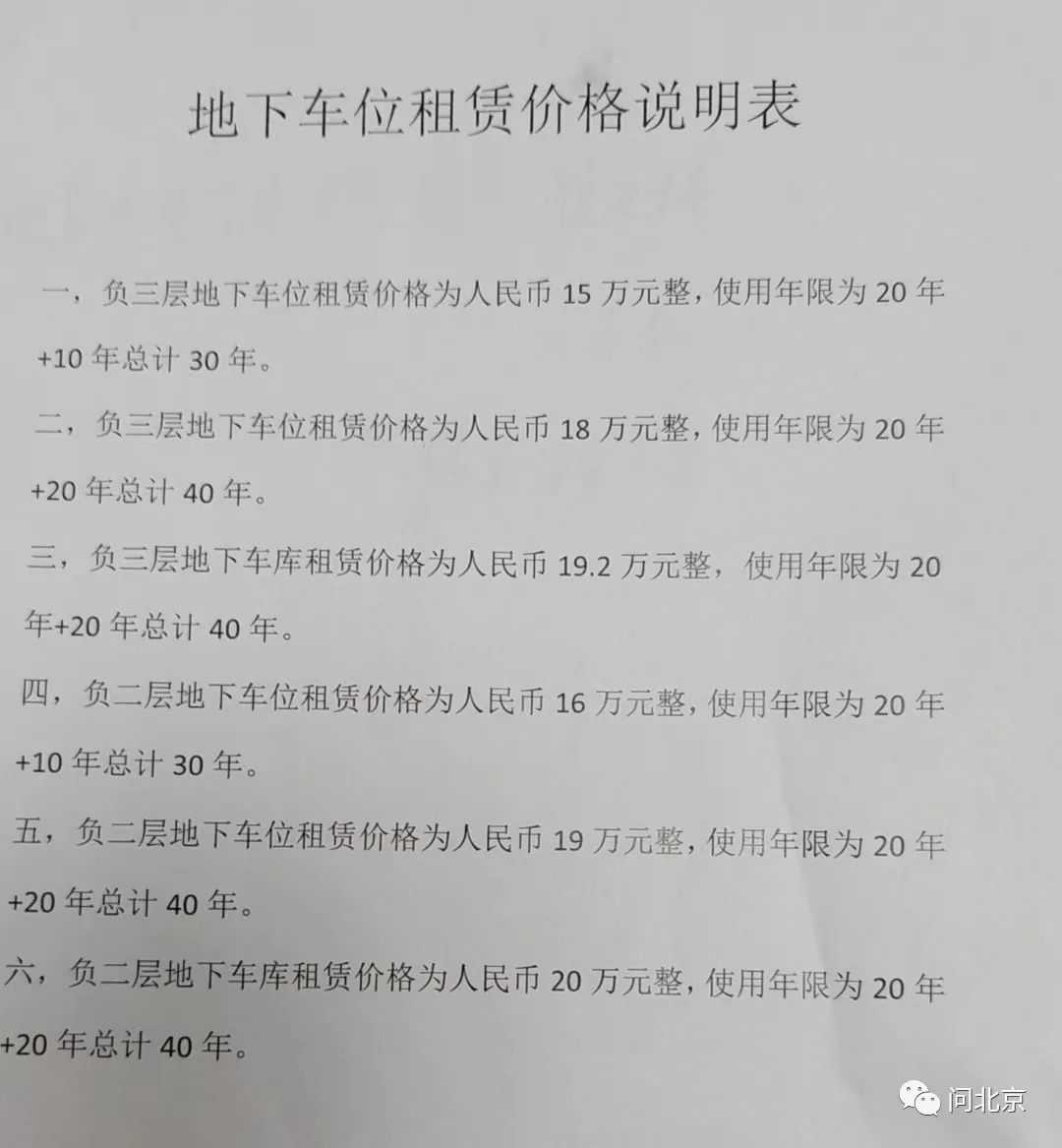 导读 停车费有按小时计费的,也有按月或者按年长期租赁的,但是您听说过一次性缴费15万元租30年的车位租赁方式吗?在北京丰台区,在一个村办企业开发建设的小区,原本一年一租的地下车库车位,突然变成15万30年的收费方式。居民们对此难以接受,并也向多个部门反映过…… 交15万租30年才能续租 近日,家住北京丰台区卢沟桥街道华富丽苑小区的王先生(化姓)反映,临近年底,本打算续租小区地下停车位时却被告知,不能再一年一租,必须一次性缴费15万元续租30年,才可以继续使用。王先生和很多小区居民认为如此收费十分不合理。 华富丽苑小区的位置/高德地图 华富丽苑小区建成于2006年前后,位于西四环和西五环之间,共有700多户居民。王先生(化姓)介绍说,小区地下停车场的负二层和负三层只有两百多个车位为居民提供停车服务,停车位比较紧俏,之前是按年来收费,费用在4000元左右。但是就在年底到来即将办理续租车位时,却被告知要一次性缴费满30年以上,最少15万元起,才能继续使用地下停车位。 王先生(化姓):小区平时停车位不够停,一共就两百多个车位,所以大家都是抢着去租的。在之前我们地库一直是一年一交钱,4400一年。然后今年刚出了个政策,15万必须一次交齐,相当于是租20年,然后送10年,不交就不能用了。 租赁模式6种最高20万40年 王先生(化姓)给“问北京”记者提供了华富丽苑小区“地下车位租赁价格说明表”,上面显示一共有六种租赁模式,分为车位租赁和车库租赁,最低的是“负三层地下车位租赁价格为人民币15万元整,使用年限为20年加10年总计30年;最高的是“负二层地下车库租赁价格为人民币20万元整,使用年限为20年加20年总计40年”。王先生(化姓)和居民们认为这种收费十分不合理。 王先生(化姓):人家现在意思就是说产权是我的,我想卖多少钱就卖多少钱,我想租多少钱租多少钱,你们爱租不租,就那意思。 地下车位租赁价格说明表/受访者提供 产权属于小瓦窑村办企业 12月14号晚上“问北京”记者来到华富丽苑小区实地探访,在现场“问北京”记者看到了被张贴出来的地下停车场产权证明,权利人为北京玉泉房地产开发中心。另一位小区居民刘先生(化姓)告诉记者,华富丽苑小区的开发商正是北京玉泉房地产开发中心,这家地产商是北京玉泉兴业投资管理公司的子公司,属于小瓦窑村的村办企业。 刘先生(化姓):我们这栋楼是一栋独立的建筑,全部是属于玉泉开发这家公司的,也就是隶属于是小瓦窑村办企业,玉泉兴业投资底下的全资子公司的产权是特别明晰,是人家的。 居民:与村委会沟通未果 刘先生(化姓)告诉“问北京”记者,针对停车费的问题,小区居民们曾经和小瓦窑村方面开过沟通会,但是对方始终坚持一次性收取30年以上的租赁费。 居民:附近小区都属于小瓦窑村 对于小区车位租赁费的收取方式,居民王先生(化姓)还介绍了一个在他看来“比较尴尬”的背景。 王先生(化姓):我们这个小区比较尴尬,就是这边那个小瓦窑村,这边全是他们大队的,附近的兆丰园一共分为三个区,剩下两个区住的都是他们村里的人,只有我们这个楼是商品房,所以他们就可着我们这些人“坑”。 居民:附近停车场不对该楼居民开放 王先生(化姓)说,在他们所在楼栋的前后各有一个地面停车场,但却不对他们出租,因此他们除了租赁地下车停车场的车位没有其他选择。 王先生(化姓):我们楼前面和后边各有一个地上停车场,这块地应该也是他们村的,然后我们有邻居去问过,这个人家说是大队里通知了不租给华富丽苑的人,就是不租给我们小区的人。就是逼我们一定要去交这个15万去租他们地下的停车场。 居民:地上停车场按年收费 另一位居民刘先生(化姓)则告诉“问北京”记者,这两个停车场对另两个小区的居民,也就是小瓦窑村村民的收费方式是按年收取。 刘先生(化姓):旁边停车场应该都是按年收费的,具体金额就不等了,有的是2000多,有的是1000多。这个就是具体车场具体分析了。 是否属实?联系求证暂未回复 村委会:我记一下联系方式,然后我找一下看看哪个领导负责,然后给你再回个电话。 此外,“问北京”记者也曾尝试通过小区物业联系开发商和村委会,但截至发稿,“问北京”记者没有收到任何回复。 社区:多次协调未果 那么,问题该如何解决?“问北京”记者为此联系了小区所在的兆丰园社区居委会,工作人员吴先生(化姓)说,针对华富丽苑小区停车费的问题社区也曾多次协调。 社区:我们也劝阻过,我们也找过街道,街道目前也没有一个特别好的解决方案,我们也找过他们公司的上级,也就是村委会,但是他们不愿意听我们按年收取的建议。 小区负三层地下停车场/受访者提供 区市监局:建议联系住建委 那么,一次性收取15万元续租30年的停车费是否合理?“问北京”记者就此致电丰台区市场监督管理局,综合执法大队的工作人员表示,有关小区停车费定价问题建议联系丰台区住房和城乡建设委员会。 区市场监管局:因为所有的建这个车库这个定价权,现在是说他们来负责,住建委。 区住建委:建议咨询房管局 于是,“问北京”记者拨打了丰台区住建委官方网站上公示的办公室电话,负责接听电话的工作人员表示,停车费问题需要咨询房管局。 区住建委:物业费和停车费这个问题不归我们这管,联系一下房管局问问看。 区房管局:价格问题咨询市场部