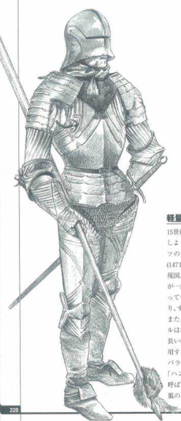 编者按:在很多关于欧洲板甲的讨论中,有这样一种观点,那就是板甲确实是铠甲时代防御力的顶峰,但它贵啊!但实际上,以生产力和物价对比来看,其实板甲的价格或成本要低于锁子甲和札甲。而且,随着欧洲战争的越来越激烈和铠甲业的发展,板甲对于很多普通军人来说也不是高不可攀的装备了。本文就专门说一下,板甲是如何飞入寻常百姓家的。 大家要知道的是,板甲虽然作为一种武器装备,但跟衣服一样都是要穿的,而且对场合与需求都有各自不同的标准。这自然就导致高端货和低端货的不同需求。15世纪末,出于对铠甲工艺的严格要求,在德意志地区,尤其是奥格斯堡生产的德意志式歌特铠甲的质量非常高。 DK大历史:从宇宙大爆炸到我们人类的未来历史百科中信出版社 ¥143 购买 根据对奥格斯堡兵器库中1470年到1500年期间的16件产品的检验,所有的产品其中15件为中碳钢,只有一件并非有海姆斯密特大师监制的背甲为低碳钢。而只有其中硬度最低的一件产自1480年,编号为的左手铁手套VPH为275,而其他的全部超过300。也只有这件铁手套为未经热处理的风冷加工,其他的全部为热加工淬火硬化的产品,其中12件经过了完全淬火。而这一规格,在铠甲质量开始走下坡路的16世纪中后,更是被明文化,以避免再次出现以次充好的情况。 根据“1562年奥格斯堡铠甲师工会规定”,铠甲师工会将销售任何“纯铁制”的铠甲定义为“欺诈客户的行为”并且会“损害奥格斯堡铠甲的声誉,因为他们可以在更方便的地区买到一样材料的铠甲”。同时规定一件铠甲比如“经过淬火处理并测试后才能发往抛光车间”(AlleArbeitsoilvonstahlernemZeuggemachtundgehartetund,ehesieaufdiePoliermuhlckommt,geschautwerden),且所有的‘胸甲及全身铠甲(CuirassandHarness)必须通过公会的产品质量测试,而这测试必须有四名不同的测试员经手,一旦通过了质量检验,就会在铠甲上刻上奥格斯堡的市徽。 而尽管‘好铠甲’这个标准只是最低限度,但是对那些真正最上等的铠甲,会被在内部打上一个‘特殊的标记’。尽管当时的文书并没有保留这个标记的真正细节,但是在现代研究的样本中,有相当多高质量的样本内部,有被打上一个圆圈中带着字母A的标记。而有不少研究者就此认为,也许这就是当年‘奥格斯堡高级品’的光荣标志。而任何出售没有经过测试的铠甲的铠甲师,除了被没收货款外,还将被处以每个不合格的铠甲部件二佛罗林的罚款,任何进口国外生产的铠甲再次转手销售的铠甲师,也会被处以同样标准的处罚。也就是说,一件完全不合格的铠甲,会被处以的罚款相当惊人。以标准的‘头盔,颈甲,左右肩甲,左右臂甲,左右铁手套,左右大腿,左右膝甲,左右小腿甲,左右铁靴‘的标准来计算的话,会被处以32佛罗林的罚金,这一价格甚至比一件经过抛光和镀金处理的骑士用全身甲,还要高出一佛罗林。 而在同一时期,实际上欧洲的其他铠甲生产中心,已经基本都放弃了对铠甲的热处理。在欧洲的铠甲生产中心意大利,根据《骑士与风炉》一书所给出的数十个自1390到1510之间的铠甲不同部分的样本,可以清晰地注意到所有意大利铠甲,主要都为低碳钢,少数为中碳钢,甚至有一些以次充好的铁制产品。而在1390到1450之间,铠甲都经过良好的热处理,平均硬度都在VPH180到250之间,但是自1450之后,热处理的质量开始大幅度的下降,部分淬火,或者过度硬化导致铠甲过脆的现象在许多样品上被发现。 而在1460之后,热处理的痕迹几乎只出现在高级定制的全身甲胄上,批量生产的胸甲,头盔,铁手套中,自然风冷的样本比例大幅度的增加。在1500前后,甚至连半身甲和全身甲中,都开始出现了大量的风冷产品。这在德意志地区是无法想像的。这不但与加工工艺有关,也与铠甲的装饰工艺切实相关。在15世纪末期到16世纪早期的米兰,淬火之类热处理已经是凤毛麟角。正如当时铠甲师所抱有的概念一样:‘如果客户真心需要强化防御,那么只需要加厚一点就好。’ 就象是以高级定制品牌为主的品派和以成衣为主的品派之间的差异一样。当时德意志式歌特的平均价格,相当于当时奥格斯堡一般市民足足一百五十天的平均收入。而意大利铠甲只需要平均六十到九十天收入的水平。 当然,精不是每一位需要良好防御的战士都需要一套全身覆盖的铠甲。就如同现代汽车销售中有高配和低配一般,如果说马克西米利安皇帝的超歌特式是超豪华配制的话,哪怕是御用铠甲商的海姆斯密特家族企业,也并没有放弃经济配置的市场。 ▲图轻量化歌特甲 图中的铠甲复原自德国艺术家阿尔佛雷希德.杜雷(1471-1528)的水彩画作品,表现的就是一位身穿轻量化歌特甲的骑兵。从他使用的装饰有狗尾巴的长枪可以看出,他是一名兼任步兵的轻骑兵,可能是佣兵,也可能是某位骑士的随从军士(MAN-AT-ARMS)。这些人正是歌特式铠甲的低端市场用户群。他们不需要完全覆盖的重型防护,但是对重点部分的防护要求完全没有降低。他所穿的轻量化歌特式铠甲的特征,也非常精确地描绘了这些更注重机动性的战士对铠甲防护的要求,实际上,在之后的两个世纪中,骑兵的铠甲也正沿着类似的思路进行着进化。 首先他并没有穿着小腿甲和铁靴。尽管小腿甲对腿部活动的影响非常有限,但是一双加起来有三公斤的铁靴子多少也会成为负担。何况铁靴格外沉重。因此,一旦需要长时间步行,战士们