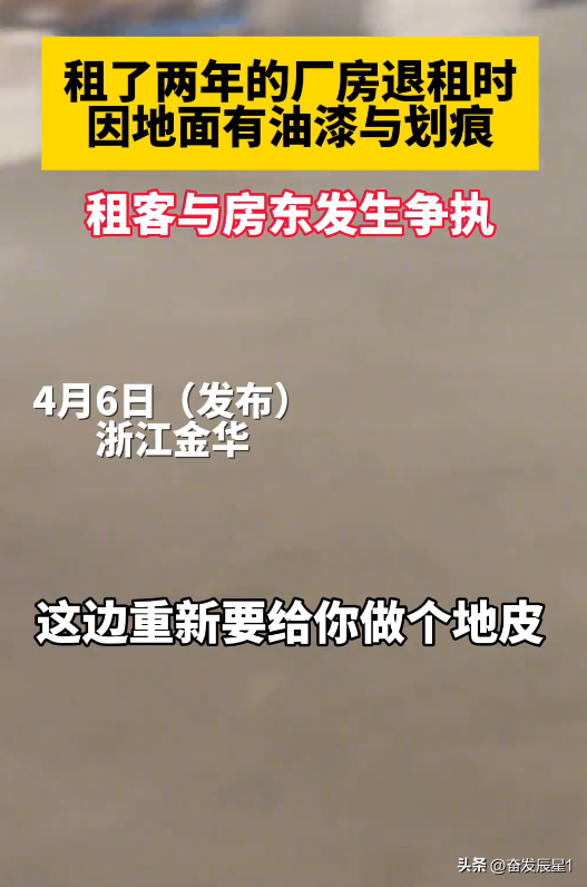 近日,金华市某小区发生了一场让人意想不到的租房纠纷。一位租客在退租时发现自己租了两年的厂房地面上有油漆和划痕,引发了与房东的激烈争执。 据了解,该租客在签订租房合同时并未仔细检查地面情况。然而,在退租时他却发现地面上有明显的油漆和划痕,严重影响到了房屋的使用价值。租客认为这是房东没有做好维护和保养的责任,要求退还押金并赔偿损失。 然而,房东却表示这些油漆和划痕是租客在使用期间造成的,他并不应该承担责任。双方的争执陷入了僵局,无法达成一致意见。 这起事件提醒我们,在租房时一定要细心观察并记录现场情况。特别是对于地面、墙壁等易受磨损的部位,更要格外留意。凡是有问题的地方都应及时与房东沟通,确保租房合同的明细中有关于维护和修复责任的条款。 同时,租客和房东之间也应该建立起良好的沟通渠道,及时解决可能出现的矛盾和纠纷。只有通过平等协商和理性交流,双方才能达成互利共赢的结果。 对于这起金华租房纠纷事件,我们呼吁相关部门加强对租赁市场的监管,设立更加完善的法律法规以保障租客的权益,避免类似事件再次发生。 此外,作为租客,我们也要提高自身的法律意识,了解租房合同中的条款和细则。只有站在自身权益的角度上,及时维权,才能保证自己的合法权益不受侵害。 租房纠纷是一个长期存在的问题,我们希望通过这起事件的曝光,引起大家对于租房合同细节的重视。只有在双方明确权益和责任的基础上,才能够实现租房市场的健康发展。 让我们共同努力,打造一个安全、公正、透明的租赁环境,为每个租客提供一个温馨而有保障的家!