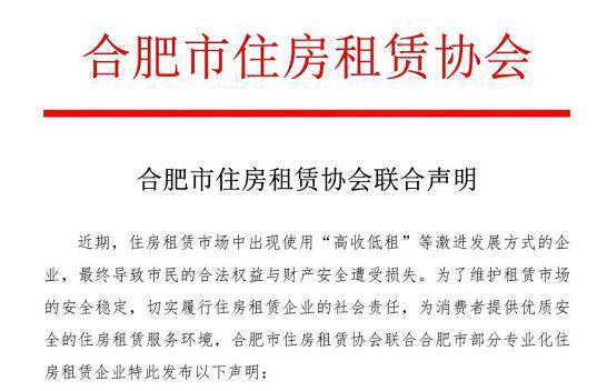 南京乐伽公寓“高收低租”导致房东、房客损失事件在合肥有新进展。安徽商报融媒体记者获悉,合肥市住房租赁协会已联合该市部分租赁企业发表联合声明,凡自愿迁入声明企业所属公寓的租客,或能得到每月170元的租金补贴。 声明表示,近期住房租赁市场中出现使用“高收低租”等激进发展方式的企业,最终导致市民的合法权益与财产安全遭受损失。 为了维护租赁市场的安全稳定,切实履行住房租赁企业的社会责任,为消费者提供优质安全的住房租赁服务环境,合肥市住房租赁协会联合合肥市部分专业化住房租赁企业特此发布以下声明: 住房租赁行业的规范经营对住房租赁市场的健康有序发展尤为重要,各住房租赁企业需做到守法经营、公平竟争、诚实守信、勇于担当,共同营造一个健康、透明的住房租货市场消费发展环境。 类似南京乐伽公寓这种以高于市场价格拿房,再以低价租给租客的“高进低出”经营模式终将难以持续,势必会给房东和租客造成损失,呼吁房东和租客提高甄别能力,参考选择合肥市住房租赁协会推荐的优秀住房租赁企业合作(会员名录可在协会网站)。 声明倡议,住房租赁市场机构化运营时间较短,在行业发展的过程中,各家租赁企业坚守运营底线,积极配合政府主管部门的监督,共同促进行业的健康发展。 联合声明企业 合肥市房屋租赁有限公司 安徹省创美房屋租赁经营有限公司 合肥市瑶海区商业资产经营管理有限公司 合肥庐阳国有房屋租赁经营有限公司 合肥市包河区房屋租赁有限责任公司 合肥市滨湖新区房屋租赁有限公司 合肥市高新国有房屋租赁经营有限公司 合肥孟邻资产管理有限公司 合肥悦客艾家公寓管理有限公司 安徽星房优租公寓管理有限公司 安徽斗客公寓管理有限公司 合肥泊寓公寓管理有限公司 合肥冠寓商业运营管理有限公司 合肥红璞公寓管理有限公司 长租公寓“资金池”问题亟待监管 无论是租金贷还是租金挪用,都涉及到“资金池”的问题,这正是近两年来,爆雷的长租公寓核心问题所在。 在乐伽公寓事件中,乐伽公寓一次性向租客收取一年甚至更长期的租金,这些资金的用途却难以监管。部分资金用来支付进一步收储房源,部分资金用于投资项目,部分资金甚至有可能被非法侵占。记者在调查中发现:部分租客向乐伽公寓支付租金时,收款方为个人账户。 乐伽公寓今年3月也曾发出公告,承认其合肥分公司存在部门员工侵占公司资金的事实。 除此之外,已经爆雷的杭州鼎家公寓和北京昊园恒业公寓则属于“租金贷”模式。 这种模式中,租客与长租公寓签订一年期合同,长租公寓诱导租客向网贷机构申请租赁住房分期贷款,网贷机构将合同期内的全部租金一次性支付给长租公寓,而租客则按月向网贷机构还本付息。 专家提醒需加强对长租公寓的资金监管。 中国人民大学重阳金融研究院副院长董希淼:比如说,对长租公寓收取的租客的租金,建立一个专门的存管制度,将租客的租金,跟长租公寓运营商的自有资金分开来,防止长租公寓运营商挪用租客的租金。 业内人士指出:除了资金运用上存在风险之外,市场中很多所谓的“长租公寓”都处于监管的空白地带。 中原地产首席分析师张大伟:各地的住建委系统,只能监管我们所说的房地产经纪公司,但是现在很多的这种企业,它打了一个擦边球,它变成了资产管理公司,严格意义上来说,就没有部门能够监管它了。 说回乐伽公寓,有媒体统计,乐伽公寓爆雷涉及的房东、租客在万人以上。 受害人区域涵盖合肥、西安、南京、苏州、杭州、成都、重庆、昆山等8个城市。 选择乐伽公寓的不少是刚毕业的大学生,因为乐伽公寓有价格优势且装修时尚,而凑钱一次付清了1年或更久的房租。 而且,在这场纠纷里,房东、房客、乐伽公寓中,房客无疑是最弱势的。 毕竟房东如果不愿意协商,要求租客走人,租客可能就真的无家可归了。 长租公寓“爆雷”众多房东、房客被坑,“接盘侠”勇气可嘉! 如果“高收低租”继续存在“爆雷” 乐伽不是第一家,也不会是最后一家!