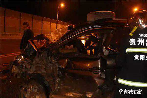 10月14日凌晨4点50分左右,贵阳市大营坡观山东路高架桥蛮坡匝道出口附近发生一起交通事故:一辆面包车和一辆出租车猛烈相撞,两车均严重变形,事故造成了多人受伤。消防、交警、急救等救援力量及时赶来,将伤者救出,并送往了医院。 当天凌晨4点58分,贵开路消防中队官兵接警赶到现场后发现,当时下着雨,出事路段是个小弯道。一辆贵AU牌照的出租车停在观山东路进城向的道路中间,车头及副驾驶位置严重受损。还有一辆贵F牌照的面包车横在观山东路出城向的路中,车头已经被撞得面目全非。一名男性伤者躺在出租车旁的地上,腿部等处受伤,而面包车驾驶员和两名乘客被变形车体卡在了车内,急需救援。 现场一名协助救援的出租车司机称,出事的出租车包括司机一共3人,其中两名乘客分别坐在前后排,前排乘客受伤较重。而面包车上有多人受伤。事故发生后,他和其他过路的热心司机一起,将面包车里未被卡住的伤者救出,并帮忙报了警。很快,急救车赶到了现场,并将其中一部分伤员送往了医院救治。 消防指挥员根据现场被困人员受伤情况,命令警戒组对周围无关人员进行疏散;救援组利用液压破拆工具组,先对面包车驾驶员实施破拆营救,随后依此对副驾驶和后排被困人员进行救援。经过近一个半小时的紧张救援,三名被困伤员被依次救出,并紧急送往医院救治。 目前,事故原因等正在进一步调查核实中。 在观山东路贵开高架桥的这处急转弯路段,曾发生过多起交通事故。2015年11月12日,一辆水泥罐车与出租车碰撞,事故致一死一伤;2015年12月20日凌晨,出租车与私家车发生交通事故,事故致5死4伤。 在2015年8月,贵州交警依据公安交警大数据云平台推出城市道路最危险的路段分析。其中,贵阳市最容易发生交通事故的9条道路分别是观山东路、甲秀南路、富源路、百花大道、贵毕路、新添大道、北京路、北京西路和花溪大道。 观山东路是连接贵阳市老城区和观山湖区的重要通道,车流量大且常有行人横穿,且下坡路段较多,易导致车辆速度较快,同时,观山湖区地势较高,道路易潮湿导致车辆打滑,冬季易出现凝冻;甲秀南路发生车辆与车辆、车辆侧翻等占73.91%,车辆与行人占26.09%,车与车的事故较多;富源路上车与车、车与人的事故平分秋色,夜间货车较多;百花大道人与车的事故占总数的69.3%,在这条路上行车特别需要注意行人,行人为了自身安全也应遵守交规,勿乱穿马路;贵毕路属于二级公路,双向两车道,自从取消收费之后,车流量剧增,超车现象增多,随之在超车过程中常与对向车辆相撞,贵毕路行车,切忌着急乱超车,弯道上更加不能超车。 图文:记者任勇