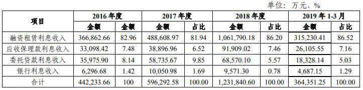 2019年开年至今,平安国际融资租赁有限公司(简称"平安租赁")已通过各类债务融资工具获取资金255.86亿元,称得上融资大户。2018年,平安租赁资产达2347.41亿元,实现净利润32.16亿元。 01|近况速递 5月23日,平安租赁连发两笔超短期融资券,预计融资25亿元。根据Wind,截至目前,2019年平安租赁已发行8笔超短期融资券、1笔短期融资券、8笔资产支持证券和4笔公司债券,融资规模达255.86亿元。 4月30日,平安租赁公布2019年一季度财报。截至3月末,平安租赁资产总额达2432.83亿元,负债总额达2121.76亿元,资产负债率为87.21%。2019年第一季度,平安租赁实现营业收入43.39亿元,净利润9.67亿元。 02|基本情况 平安租赁成立于2012年9月,历经9次增资,当前注册资本为132.42亿元。 平安租赁的股权结构方面,中国平安保险(集团)股份有限公司(简称"平安集团")占比67.93%,中国平安保险海外(控股)有限公司占比32.07%。 图:平安租赁股权结构 由于平安集团股东较为分散,平安租赁隶属于平安集团,故无实际控制人。 截至2018年末,平安租赁拥有一级全资及控股子公司10家(含境外3家),主要参股公司1家,二级全资及控股子公司18家(含境外2家),三级全资及控股子公司21家(均为境外SPV公司)。 03|业务情况:主营业务行业分散 平安租赁主要经营融资租赁、经营性租赁以及咨询业务,融资租赁、保理及委托代理业务收入主要来自于融资租赁业务产生的利息收入。2018年,平安租赁主营收入达123.18亿元,融资租赁利息收入达106.18亿元,占利息收入的比例为86.20%,2019年一季度这一比例为86.52%。 表:平安租赁主营收入情况 近几年,平安租赁的融资租赁业务量增长较快,截至2019年3月末,公司租赁项目达41773笔,租赁资产余额达2006.10亿元。 平安租赁的融资租赁业务以售后回租为主,业务网络遍及全国各地,以中小企业和事业单位为主,涉及行业较为分散。从投放规模来看,融资租赁主要集中在健康卫生、城市发展、能源冶金、工程建设和企业融资这几个板块,投放金额占比在10%以上。其中,城市发展行业的租赁资产本金余额占比最高,达18.99%,其次为健康卫生行业,占比12.59%。 表:平安租赁2018年业务板块分布情况(单位:万元) 2018年,平安租赁收入最高的业务板块是城市发展,收入26.62亿元,占总收入的比重为17.52%;健康卫生行业收入21.83亿元,占比14.37%。 04|融资情况 表:2019年3月末平安租赁融资结构 截至2019年3月末,平安租赁有息债务总额为1672.63亿元,其中中长期借款6726.87亿元,短期借款395.23亿元,应付债券604.70亿元。 05|业绩情况:净利润增长超6成 截至2018年末,平安租赁资产总额达2347.41亿元,同比增长32.54%;负债总额达2055.01亿元,同比增长32.92%;资产负债率为87.54%。 2018年,平安租赁实现营业收入154.48亿元,同比增长62.03%;净利润32.16亿元,同比增长60.88%。 截至2018年末,平安租赁主要资产的不良资产率为0.89%,租金回收率为98.52%。