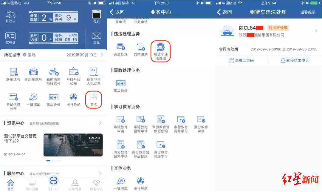 以前,驾驶人在外地租车一旦发生违法,通常需要回到交通违法地进行处理或由租车公司申请以代办人形式处理,交通、时间成本都非常高。 9月20日起,公安交管6项新措施推行,其中一项是“租赁车交通违法处理简捷快办”,该项便民措施实施后,租赁车承租人可以直接通过“交管12123”手机APP进行网上查询、自助处理租赁汽车交通违法情况,免去两地奔波的辛劳。 处理流程↑ 今天(9月23日),红星新闻记者从成都市交管局了解到,目前该措施在四川、江苏先行试点,年底将在全国全面推行。 “租赁车交通违法处理简捷快办”具体如何操作呢?成都市交警一分局民警吴晓乔进行了详细介绍。首先租赁企业要到交管部门进行备案,目前一分局辖区(武侯区)已经有4家租赁企业在分局完成了备案。企业和承租人产生租赁合同后,上传到交管部门管理平台,就建立了承租人和车辆在租赁期间的绑定关系。 处理流程↑ 吴晓乔表示,在合同期间,可以建立临时绑定关系,一辆车最多可以绑定3个人,可处理备案后至租赁合同期限届满发生的交通违法。目前该措施只针对小型汽车(7座及以下),租赁分为短时租赁和分时租赁,短时租赁期限最多为30天,分时租赁最多2天。 另外,交管部门也提醒广大租赁车承租人,在租赁合同期间有交通违法而拒不处理的,由公司向公安机关申请违法转移,经核实后,违法将转移到承租人名下。仍拒不处理的,交管部门将实施公告处罚。 红星新闻记者张肇婷图片由交警提供