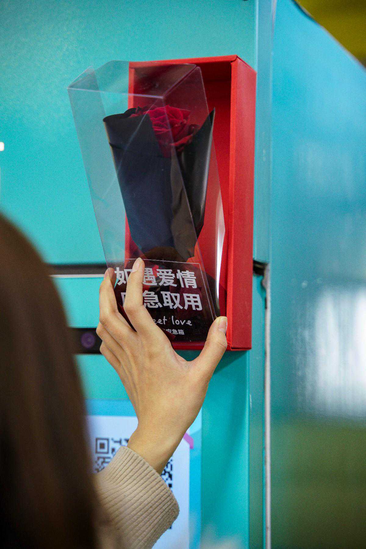 “红色装置”里放着一支玫瑰花,透明封面上写着“如遇爱情紧急取用”。这个诞生于法国街头的浪漫,近日现身北京53座地铁站,给来去匆匆的乘客带来一份小惊喜。 在14号线蒲黄榆地铁站的站厅内,装着各色鲜花的贩售机前不时有乘客驻足。贩售机的右上角黏着一只红色纸盒。一大早,鲜花驿站的工作人员便将一支红玫瑰放入其中。“这是爱情应急箱,如果在路上突然遇到让你怦然心动的人,但你又没准备任何礼物,你就可以免费取出这枝玫瑰花向她(他)表白。昨天我来补货,后面一个姑娘还问我,是不是表白失败了。”工作人员张天亮笑着说。 爱情应急箱在本市已投放一周,现身在北京10条地铁线中的53个站点,如4号线枣园站、6号线平安里站、5号线和平里北街站、10号线西钓鱼台站、16号线西苑站,而14号线几乎每站都有。 “希望能让这座忙碌的城市多一些浪漫。”鲜花驿站的设计总监曹岩说,今年受疫情影响,许多人都感受到了生活的艰难。地铁里的人们行色匆匆,鲜花驿站想通过这样一种公益活动的形式,让城市多一抹亮色。“乘客往来看到爱情应急箱,如果可以放慢脚步,或者触发内心的浪漫情怀,这是一件很美好的事儿。”曹岩说。 应急玫瑰外壳如同防火栓取“应急”之意,实际上是纸盒与塑料封面 应急玫瑰不只献给爱情,带来的是一份美好、一份幸运。从玫瑰放入到拿出的三个小时里,许多人前来打卡,多数是年轻女性。乘客付女士说:“我们都是每天挤地铁奔波的打工人,哪有时间浪漫?现在浪漫就在身边,真的很暖心。”她有感而发地说,“如果遇见一个因为工作崩溃而流泪的人,我会告诉他,这朵小花可以取下来送给自己。” 虽然许多人为这朵玫瑰花停下了脚步,却并没有轻易把它取下,一位背着小提琴的女孩儿说:“看着它就觉得挺美好,希望留给有需要的人。” 鲜花驿站的工作人员表示,尽管也有折断花头甚至将盒子一块带走的不文明行为,但属于极个别现象,大部分乘客都在默默守护这份小小的温馨。曹岩说,爱情应急箱的灵感来自法国街头的行为艺术“应急玫瑰”,希望能把人们的情感从忙碌、紧张的城市生活中释放出来。