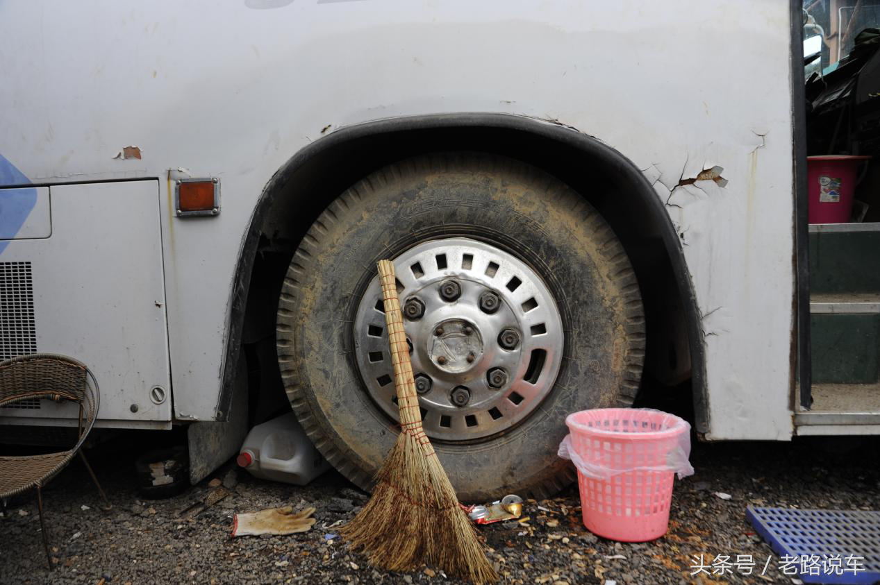 相信在许多90后的记忆里,总有那么几款童年时期印象深刻的车。对于热爱商用车的小编来说,童年时坐过最好的大巴即是这款经典的日野大客车。90年代沿海开放地区的长途旅游大巴都是这种豪华商务班车,另外在大公司、政府等单位也能见到其作为班车的身影,在路上总是左摇右晃地跑。近日一个偶然的机会,小编有幸在某个角落邂逅了这台老骥。 前风挡的两片玻璃造型复古,雨刮也设计成了对刮形式,可以看到风挡正下方设计有玻璃水喷头。 转向灯和示廓灯集成在一起,早期的车型还是四圆灯,到了后期为了适应潮流都改成了四方灯。 大灯旁暗格内藏有备胎升降装置,备胎就在车头正下方,插入专用的手柄后转动就能使备胎升降。 三级登车踏步每一级皆覆有斜纹铝合金防滑板,车门是气动助力的自动门。 光亮如新的电镀把手却隐隐透出一份历史的厚重感。 右下角连接车门与气缸的结构已经不知所踪,紧急柄在紧急情况下拉出后可手动开启车门。 这辆老车最后的年检日期是2015年,也就是说这辆车应该是在1995年上的牌,算是最后的一批车了,留到现在非常不容易,希望有爱车之人把它收藏了。 窗外还下着小雨,而我的心情也随着天气变得沉重。 驾驶区域和同期的日野大鹰卡车如出一辙,没有过多的装饰,简单实用是日系商用车的特点。 里程表的数字停留在了60万公里,正值壮年却逃脱不了被强制报废的命运。 独立冷暖空调由日本电装公司出品,令人惊讶的是空调竟然带有自动恒温功能,这个功能放到现在的国产大巴上都能大吹特吹,何况是一辆20多年前的老车。 控制车门开合的开关和空调面板同样设置在离司机左手最近的小工作台上,方便司机操作。 控制灯光的组件并不是常见的按钮,而是老式的金属拨杆。 发动机熄火开关,向外拉出即可断油从而熄灭发动机,那个电子技术还不够成熟年代大型柴油车的标配之物。 司机位座椅带机械弹簧减震,长长的手刹车和换挡杆直插入地板。 负责传递动力的是一台5前进挡变速器。 CD收音机、音响和彩色电视机等娱乐硬件该有的都有,一样不落。 发黄的车顶和这辆老车见证了他们所走过的沧桑岁月。 车内的座椅几乎都被拆除,改成了民工的宿舍。虽然已经停止行驶数年,但却依然在以另一种形式延续它的使命。 小时候我印象最深刻的,还是那车里淡淡的木头味道、柔软的减震和舒适的坐感。 乘客有48个座位,加上导游座和司机位,准乘人数应该是50人。 最后一排座椅没有拆除,靠背可独立调节,扶手带有烟灰缸。复古的梅花座套配合白色枕巾令人怀念。 HINO已经褪去了原色,蓝色丝带却还在随风飘扬。 三段式(前、后段槽型大梁,中段桁架结构)底盘和全车空气悬挂是日野RU大客车引以为傲的资本,当时的那种日系大巴车是直接进口过来的,底盘和动力系统均按照国外高等级公路客运要求设计,所以底盘到动力到乘坐环境都是不错的。车子开起来之后除了后排噪音稍大之外,整体感觉就像是坐在一艘摇摇晃晃的大船上,低速走坑坑洼洼的国道每过一个坑,车身都要来回晃几次,没坐过的人不太能体会到这种神奇的感觉。当时好多人不适应那种晃晃悠悠的感觉,在转弯的时候客车会向一侧倾斜,底盘几乎要檫到地面,对于容易晕车的人来说就是噩梦,每次一上车司机就忙着发呕吐袋。而当高速行驶时车身却能稳稳当当地紧紧抓在公路上风驰电掣。 可惜现在很难见到这种亮瓦了。 行李舱实际可用空间不是很大,多数空间被各种设备所占据。 据说这辆车有两个油箱和两个发动机,其中一套油箱和发动机是专门供给独立空调运作的。 与同时期日系卡车一样醒目的灯组,还是原厂出品,外侧有一圈电镀件保护,远看粗犷简陋,实则精致耐用。 前后保险杠与卡车一样直接和大梁相连,容易发生剐蹭的保险杠两端有橡胶包裹,中间牵引钩上方清楚地标明了其极限载荷。 打开发动机舱,可以看到左侧是空气滤清器,冷却水箱在发动机正上方(可以不开启发动机舱盖加注),右侧是中冷器。 搭载的是日野H07型直列6缸后置卧式发动机,卧式发动机活塞水平运动作功,同期日产UD客车也有这种设计。好处是降低发动机仓高度,使车厢内部空间利用率更大,乘坐舒适性更好。缺点也有,那就是后轴负荷较大,不利于整车操控稳定性。 驻车制动并不是作用在车轮上的,而是作用在传动轴上的中央制动。在变速箱后方与传动轴的连接处有一个制动盘,通过与驾驶室手刹连接的钢索将拉力传动到制动盘,从而实现驻车制动。 发生紧急情况时太平门绝对是后排乘客逃出生天的太平之门。 拆下后被丢弃在一旁的座椅,期待还能有再重新装回去的那一天。 这可是当年满街跑的大鹰啊!那特别的加速声浪,巨大嘎嘎的响声(几乎所有的日系重型车都是这样的加速声)中体现的澎湃动力和欧洲重型车的加速声是有很大的区别(欧系的是清晰宁静的响声,没有日系的嘈杂,体现出低转速的强劲动力)。前几年偶尔还能看见一两辆老日野在街上跑,曾经飞驰的大红鹰,可惜现今也都消失在时代的洪流中了。