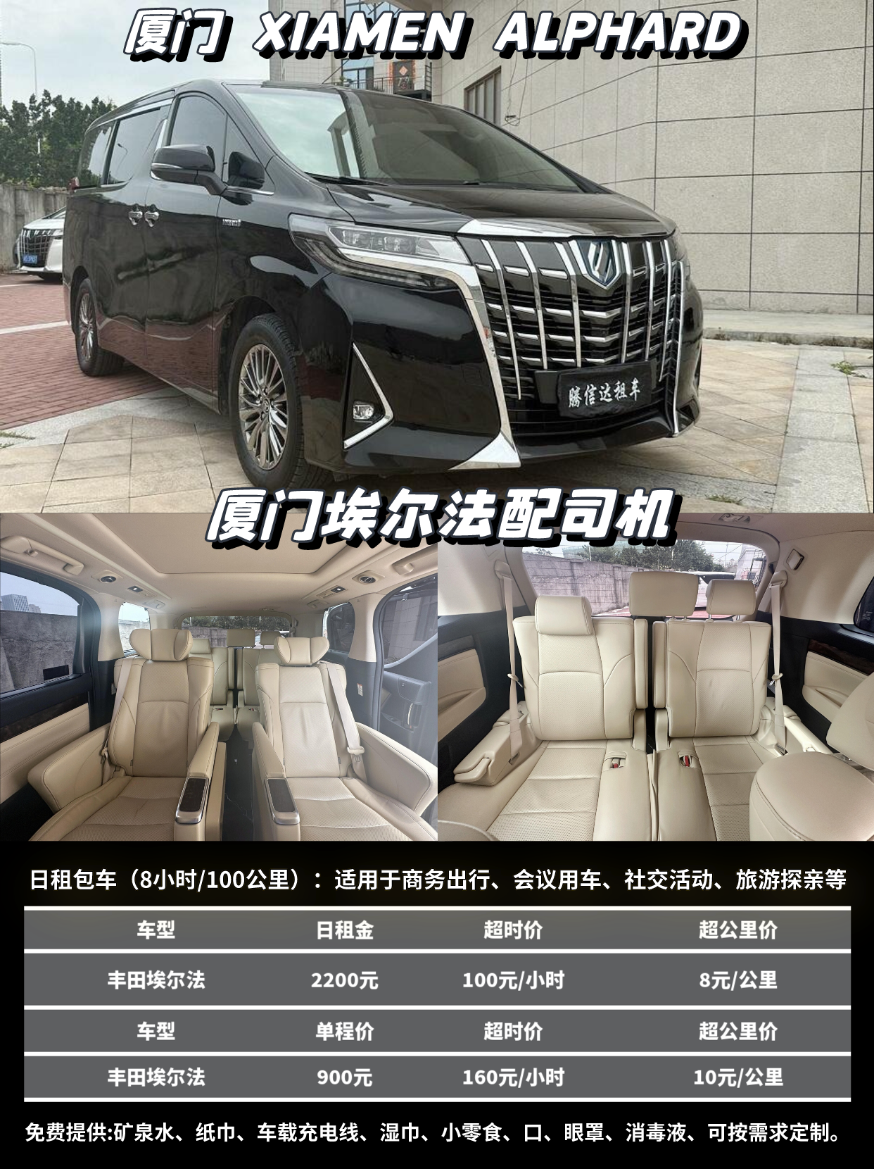厦门,被誉为"海上花园"的城市,每年吸引着大量的游客和商务人士。对于许多人来说,租车可能成为在厦门自由出行的首选。然而,厦门一天租车的费用又是多少呢?众所周知,经济型车的租赁费用与奢华型车相比,明显要低得多。因此,选择何种车型将直接影响到您的租车费用。 厦门租车一天的费用 对于一天的租期,经济型轿车一般在150元至300元之间,但这会根据您选择的车型和品牌有所不同。此外,如果您需要司机服务,那还需要支付额外的司机费用。另一方面,为了降低租赁汽车的成本,您可以充分利用各类优惠,如预付费优惠,常客优惠,或提前预定折扣等,这样可以大大减少租车的费用。 厦门租车一天的费用 厦门租车自驾包车价格明细表如下: (厦门市内一天含8小时100公里,不含停车费,过路费) 帕萨特/迈腾|配驾包车:600元/天|自驾:400元/天 奥迪A6L|配驾包车:900元/天|自驾:700元/天 奔驰E级|配驾包车:1100元/天|自驾:900元/天 奔驰S级|配驾包车:2200元/天|自驾:1800元/天 迈巴赫|配驾包车:2900元/天|自驾:2600元/天 别克GL8|配驾包车:800元/天|自驾:500元/天 9座奔驰威霆|包车:1200元/天|自驾:900元/天 7座奔驰V260|包车:1200元/天|自驾:900元/天 7座丰田埃尔法|包车:2200元/天|租车:1800元/天 15-17座海狮|配驾包车:1000元/天 丰田考斯特13-27座|配驾包车:1100-2800/天 33-55座大巴|配驾包车1400-1800/天 厦门租车一天的费用 尽管租车似乎是出行的理想选择,但也存在一些挑战。比如需要留意租赁合同的具体规定,比如超里程费,保险费用等等。而且,如果您不是中国公民,可能在租车时需要提供相应的国际驾照。 厦门租车一天的费用 总的来说,厦门一天的租车费用受众多因素影响。因此,如果您计划在厦门租车,建议您事先做好研究和准备,以获得更为划算的租车服务。 厦门租车一天的费用 关于我们 纯纯干货:避免踩雷,关于厦门租车攻略推荐 经营理念:诚信经营,不坑骗客户,明码标价 提供三年内新车租赁,车况优秀!!! 需要租车自驾、包车、商务接待,找我就对啦!