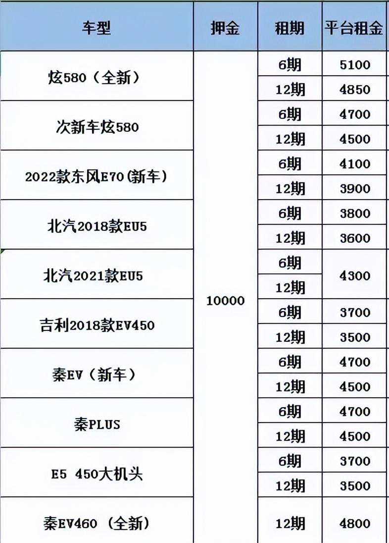 根据车型和车况的不同,车辆押金在3000-10000元不等。