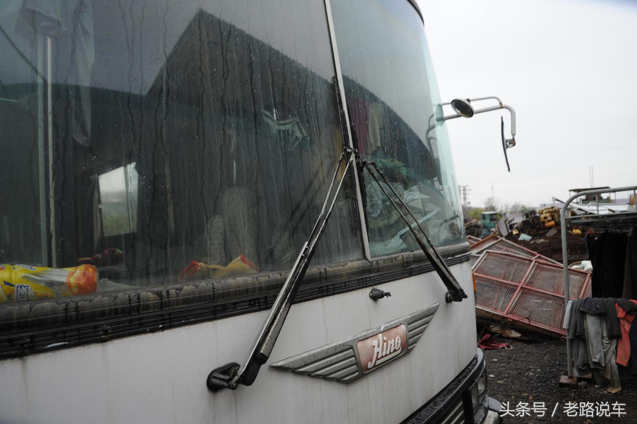 相信在许多90后的记忆里,总有那么几款童年时期印象深刻的车。对于热爱商用车的小编来说,童年时坐过最好的大巴即是这款经典的日野大客车。90年代沿海开放地区的长途旅游大巴都是这种豪华商务班车,另外在大公司、政府等单位也能见到其作为班车的身影,在路上总是左摇右晃地跑。近日一个偶然的机会,小编有幸在某个角落邂逅了这台老骥。 前风挡的两片玻璃造型复古,雨刮也设计成了对刮形式,可以看到风挡正下方设计有玻璃水喷头。 转向灯和示廓灯集成在一起,早期的车型还是四圆灯,到了后期为了适应潮流都改成了四方灯。 大灯旁暗格内藏有备胎升降装置,备胎就在车头正下方,插入专用的手柄后转动就能使备胎升降。 三级登车踏步每一级皆覆有斜纹铝合金防滑板,车门是气动助力的自动门。 光亮如新的电镀把手却隐隐透出一份历史的厚重感。 右下角连接车门与气缸的结构已经不知所踪,紧急柄在紧急情况下拉出后可手动开启车门。 这辆老车最后的年检日期是2015年,也就是说这辆车应该是在1995年上的牌,算是最后的一批车了,留到现在非常不容易,希望有爱车之人把它收藏了。 窗外还下着小雨,而我的心情也随着天气变得沉重。 驾驶区域和同期的日野大鹰卡车如出一辙,没有过多的装饰,简单实用是日系商用车的特点。 里程表的数字停留在了60万公里,正值壮年却逃脱不了被强制报废的命运。 独立冷暖空调由日本电装公司出品,令人惊讶的是空调竟然带有自动恒温功能,这个功能放到现在的国产大巴上都能大吹特吹,何况是一辆20多年前的老车。 控制车门开合的开关和空调面板同样设置在离司机左手最近的小工作台上,方便司机操作。 控制灯光的组件并不是常见的按钮,而是老式的金属拨杆。 发动机熄火开关,向外拉出即可断油从而熄灭发动机,那个电子技术还不够成熟年代大型柴油车的标配之物。 司机位座椅带机械弹簧减震,长长的手刹车和换挡杆直插入地板。 负责传递动力的是一台5前进挡变速器。 CD收音机、音响和彩色电视机等娱乐硬件该有的都有,一样不落。 发黄的车顶和这辆老车见证了他们所走过的沧桑岁月。 车内的座椅几乎都被拆除,改成了民工的宿舍。虽然已经停止行驶数年,但却依然在以另一种形式延续它的使命。 小时候我印象最深刻的,还是那车里淡淡的木头味道、柔软的减震和舒适的坐感。 乘客有48个座位,加上导游座和司机位,准乘人数应该是50人。 最后一排座椅没有拆除,靠背可独立调节,扶手带有烟灰缸。复古的梅花座套配合白色枕巾令人怀念。 HINO已经褪去了原色,蓝色丝带却还在随风飘扬。 三段式(前、后段槽型大梁,中段桁架结构)底盘和全车空气悬挂是日野RU大客车引以为傲的资本,当时的那种日系大巴车是直接进口过来的,底盘和动力系统均按照国外高等级公路客运要求设计,所以底盘到动力到乘坐环境都是不错的。车子开起来之后除了后排噪音稍大之外,整体感觉就像是坐在一艘摇摇晃晃的大船上,低速走坑坑洼洼的国道每过一个坑,车身都要来回晃几次,没坐过的人不太能体会到这种神奇的感觉。当时好多人不适应那种晃晃悠悠的感觉,在转弯的时候客车会向一侧倾斜,底盘几乎要檫到地面,对于容易晕车的人来说就是噩梦,每次一上车司机就忙着发呕吐袋。而当高速行驶时车身却能稳稳当当地紧紧抓在公路上风驰电掣。 可惜现在很难见到这种亮瓦了。 行李舱实际可用空间不是很大,多数空间被各种设备所占据。 据说这辆车有两个油箱和两个发动机,其中一套油箱和发动机是专门供给独立空调运作的。 与同时期日系卡车一样醒目的灯组,还是原厂出品,外侧有一圈电镀件保护,远看粗犷简陋,实则精致耐用。 前后保险杠与卡车一样直接和大梁相连,容易发生剐蹭的保险杠两端有橡胶包裹,中间牵引钩上方清楚地标明了其极限载荷。 打开发动机舱,可以看到左侧是空气滤清器,冷却水箱在发动机正上方(可以不开启发动机舱盖加注),右侧是中冷器。 搭载的是日野H07型直列6缸后置卧式发动机,卧式发动机活塞水平运动作功,同期日产UD客车也有这种设计。好处是降低发动机仓高度,使车厢内部空间利用率更大,乘坐舒适性更好。缺点也有,那就是后轴负荷较大,不利于整车操控稳定性。 驻车制动并不是作用在车轮上的,而是作用在传动轴上的中央制动。在变速箱后方与传动轴的连接处有一个制动盘,通过与驾驶室手刹连接的钢索将拉力传动到制动盘,从而实现驻车制动。 发生紧急情况时太平门绝对是后排乘客逃出生天的太平之门。 拆下后被丢弃在一旁的座椅,期待还能有再重新装回去的那一天。 这可是当年满街跑的大鹰啊!那特别的加速声浪,巨大嘎嘎的响声(几乎所有的日系重型车都是这样的加速声)中体现的澎湃动力和欧洲重型车的加速声是有很大的区别(欧系的是清晰宁静的响声,没有日系的嘈杂,体现出低转速的强劲动力)。前几年偶尔还能看见一两辆老日野在街上跑,曾经飞驰的大红鹰,可惜现今也都消失在时代的洪流中了。