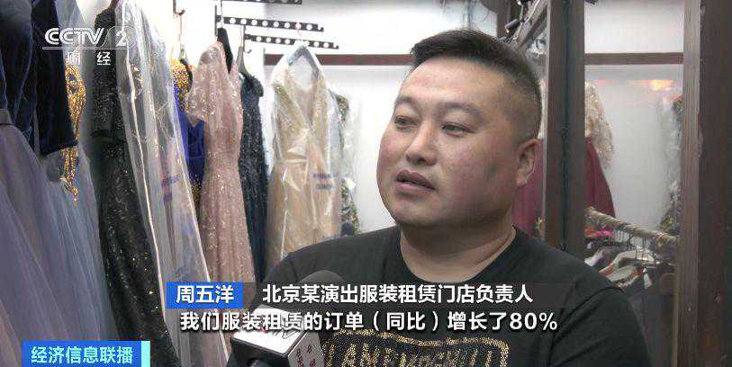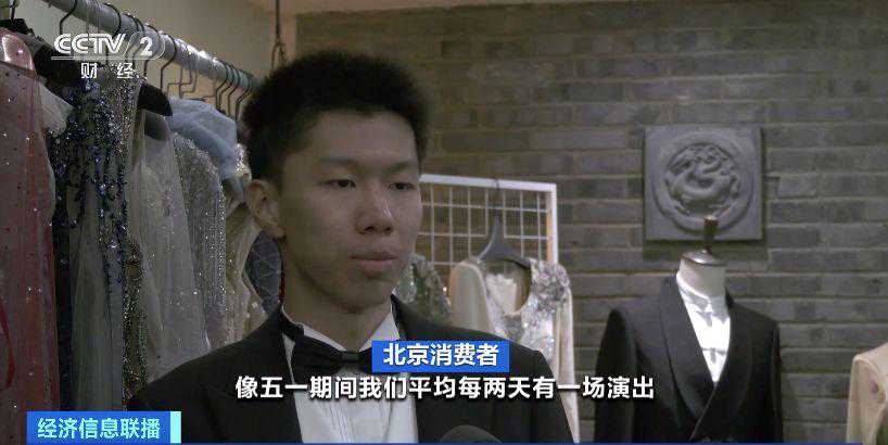 (央视财经《经济信息联播》)随着演出市场的强劲复苏,相关演出服装的租赁销售也出现升温,不少店铺生意大增。 早上八点,北京市海淀区的一家演出服装租赁门店尽管比平时提前两小时开门,但前来咨询的消费者依旧络绎不绝,这样的情形已经持续了半个多月。 店内有不同类型的近500余款演出服,此外还有项链、耳环等配套饰品,租赁价格一般在100元—400元不等。 北京消费者:租乐队的指挥服,“五一”期间平均每两天有一场演出。我们根据不同的曲目租不同的衣服,像这款属于西洋款式,是300元一天。 北京某演出服装租赁门店负责人周五洋:近半个月来,我们服装租赁的订单同比增长了80%,我们相应增加了近百个款式来满足大家的需求。 不仅租赁热,演出服装的销售也同样火热。在天津市和平区的这家演出服销售门店,近半个月销售量环比增长了一倍。 天津某演出服装销售门店店长杨午妹:汉服配着头饰还有鞋子,每天进店有一二百个人,销售情况非常火爆,箱子里库存几乎卖空。 转载请注明央视财经